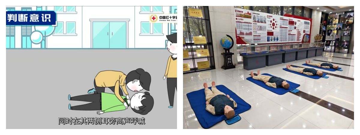 学院对应急救助小组和应急疏散小组人员进行更新确定,组成学院安全事故应急处理工作小组,一旦发生消防安全事件,工作小组成员要分岗分责,完成相应楼层人员疏散、人数清点、防火门通道封闭等内容,防止火情蔓延。为了持续提升全院师生医学紧急救助能力,学院于11月22日—12月6日,在学院南大厅电子屏播放紧急救助教学视频,在西大厅摆放模具和PPT步骤教程供师生进行实践操作,希望全院师生能积极学习,提升相互急救的技能。