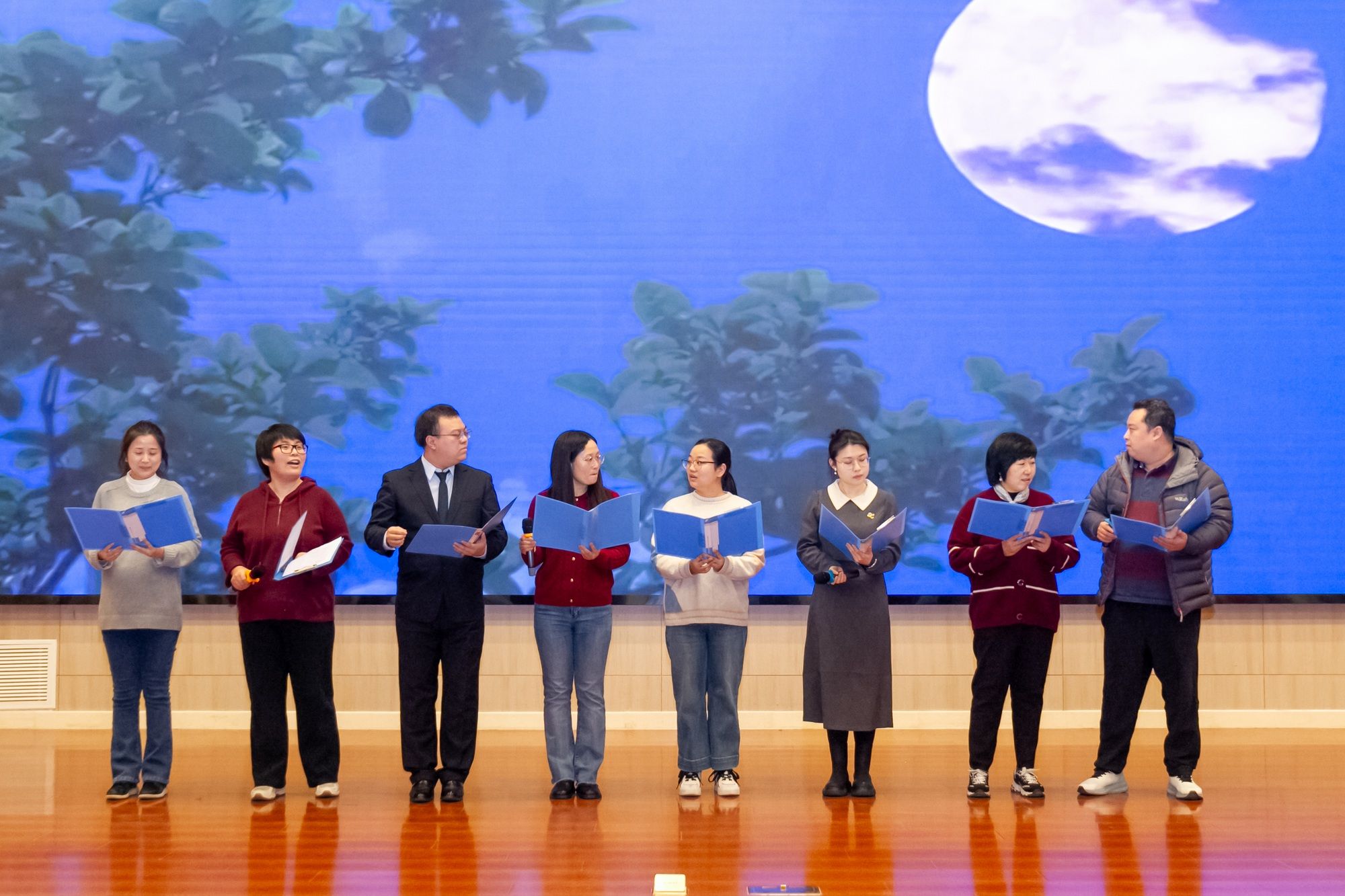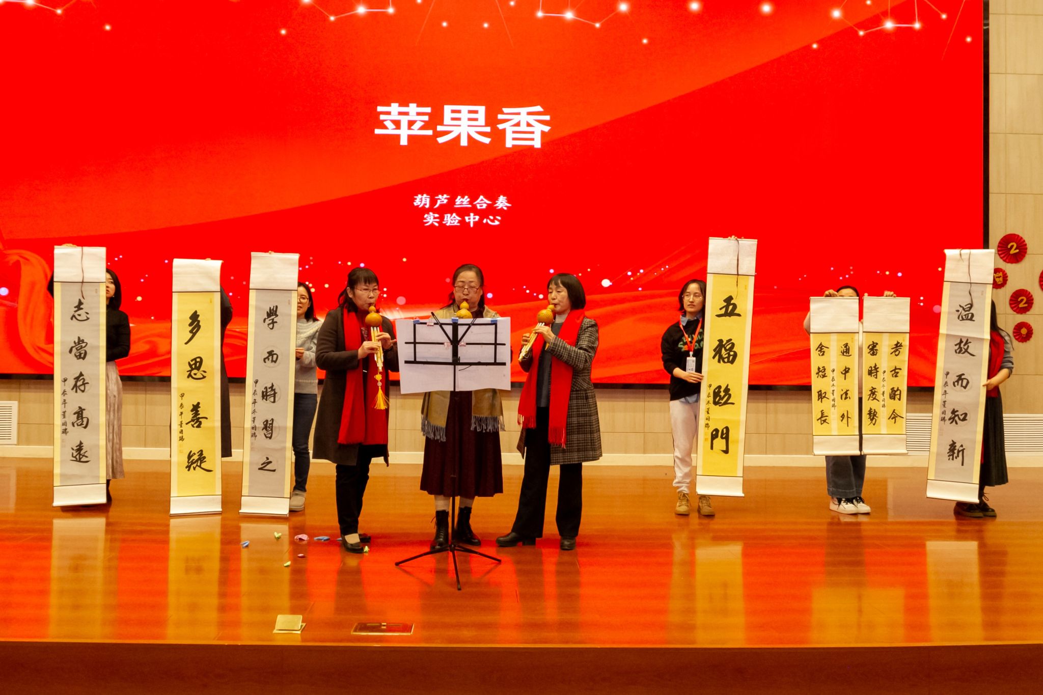 活动在主持人热情洋溢的开场中拉开帷幕。青春活泼的舞蹈《Shooting Star》、热情澎湃的合唱歌曲《真心英雄》、情深意长的二胡独奏《喜唱丰收》、饱含深情的合唱歌曲《中国人》、富有民族特色的舞蹈《龙飞凤舞》、默契而又充满幽默的相声《学直播》、洋洋盈耳的朗诵《月光下的中国》、悠扬婉转的葫芦丝合奏《苹果香》、温暖治愈的合唱歌曲《我们的生活充满阳光》等文艺表演轮番登场。节目精彩纷呈,合唱、舞蹈、相声、朗诵等各具特色、妙趣横生,为大家带来了无尽欢乐。