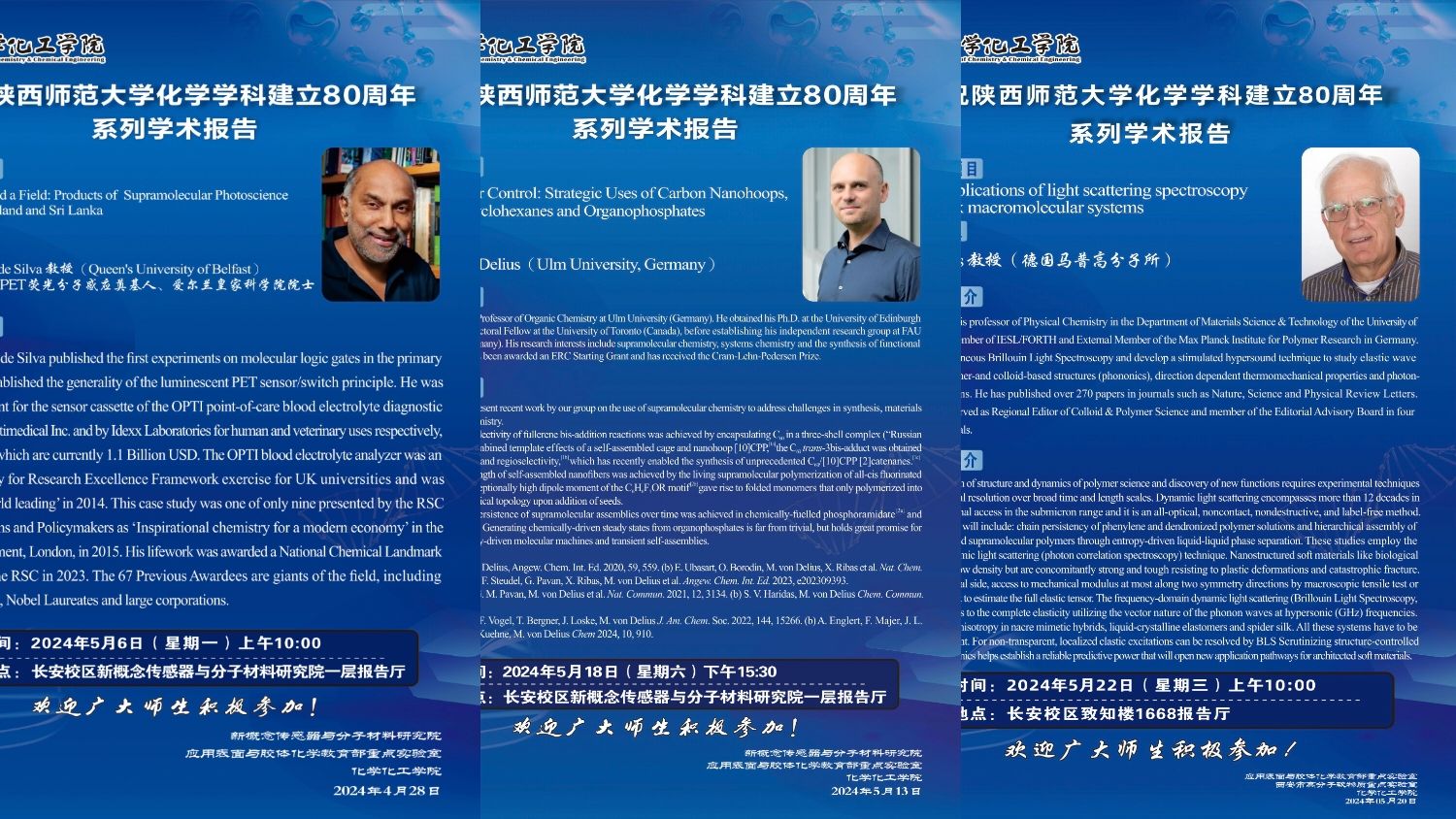 研究生进行了主题为“Fluorescent Signalling and Molecular Logic Systems”的课程讲座以及学术讨论5场。这些知名专家的报告,为学院带来国际前沿学术动态和先进研究方法,有力推动学院科研水平提升,助力提高人才培养质量,促进学院学科持续发展。