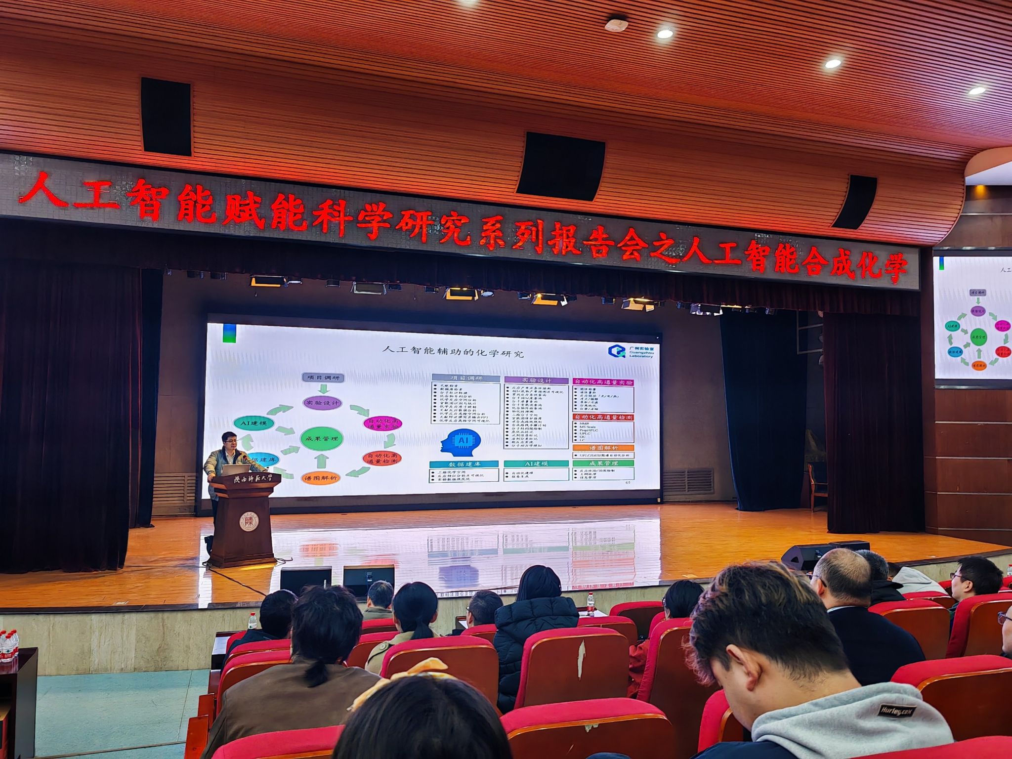 联合主办的人工智能赋能科技创新专题学术报告会首场报告在新勇学生活动中心二层学生剧场举办。本次报告邀请广州国家实验室廖矿标研究员作题为“人工智能合成化学”的专题学术报告。全校各理工科学院主管科研的副院长、教师代表、学生代表、科学技术处干部及各理工科学院科研秘书参加本次会议。我校科学技术处处长、香蕉视频