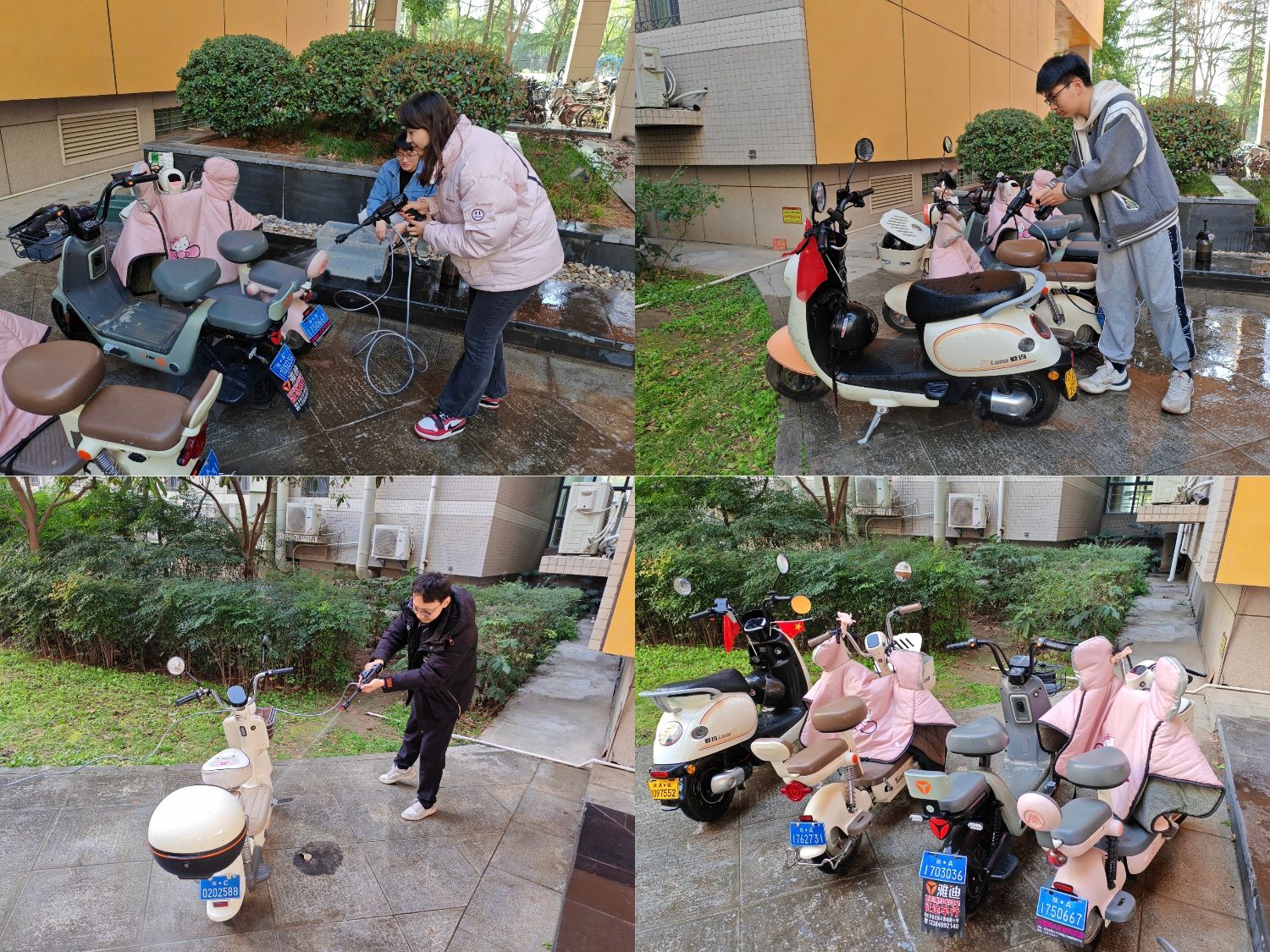 学院学生会开展校园电动车清洗活动。近日,学院学生会组织开展劳动教育实践活动,组建了一支由150余名本科生构成的“清洁出行”电动车清洁志愿服务队,在致知楼天井花园南侧免费为长安校区师生清洗电动车。活动开展以来,志愿者们已累计开展10天75小时的志愿服务活动,共清洁电动车900余辆,培养了个人劳动实践能力,弘扬了志愿服务精神。原本沾满灰尘的车辆在志愿者们的努力下焕然一新,师生们骑上干净的电动车,纷纷对志愿者们的付出表示感谢。