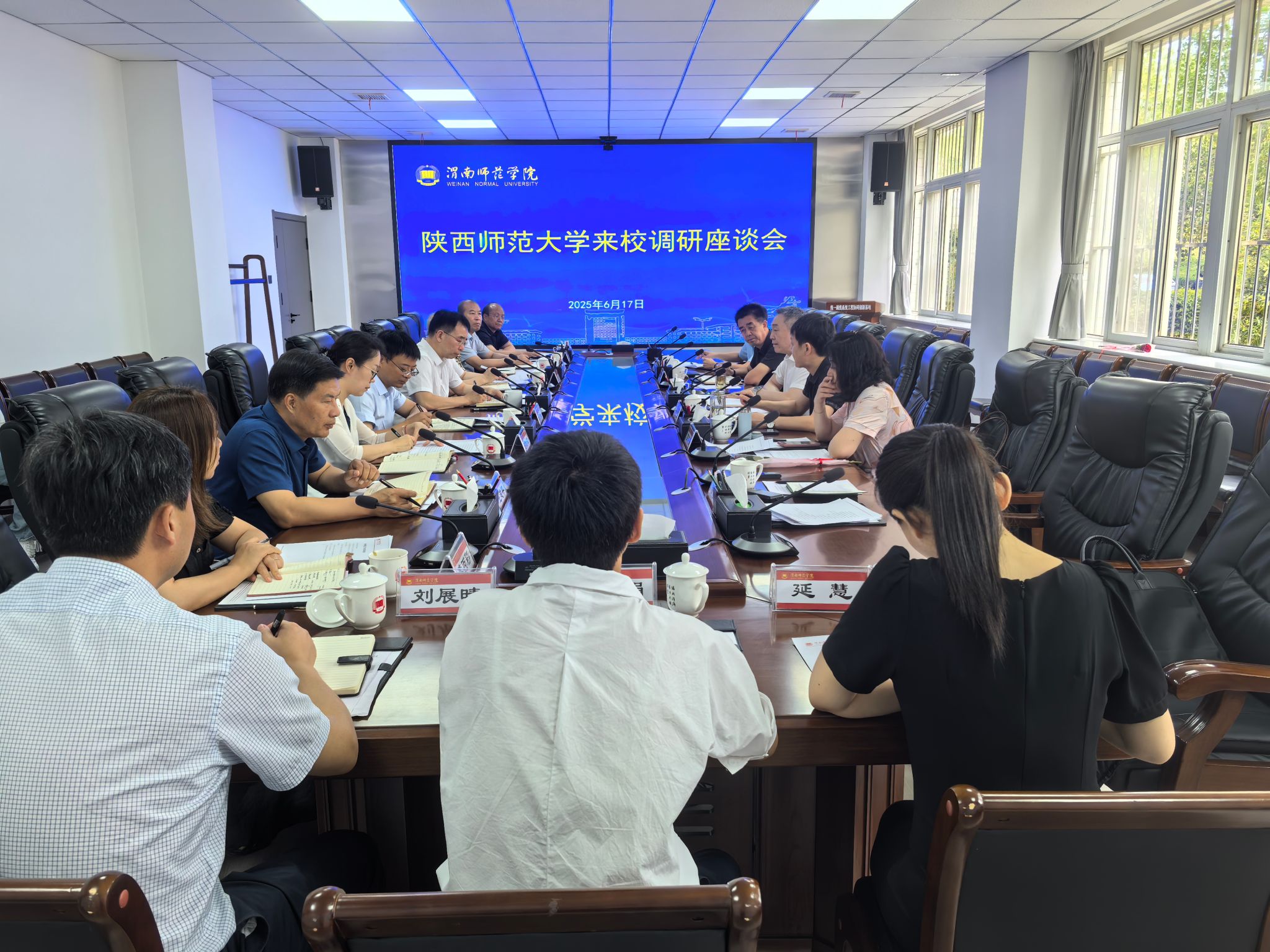 调研组赴渭南师范学院开展调研座谈。渭南师范学院党委书记张守华等班子成员参加调研座谈会。双方就服务地方经济社会发展、师范院校协同提质增效、陕西教师教育创新与发展联盟工作开展情况,以及如何发挥党建示范引领、抓好学生思想政治教育等工作展开深入交流。李晓兵表示,长期以来,两校在诸多领域开展了广泛合作交流,形成了深厚友谊,希望两校在师范生家国情怀培植、教师教育素养和综合素质提升方面探索新路径。他强调,两校要以师范院校协同提质、陕西教师教育创新与发展联盟工作推进为契机,不断提升办学实力和服务教育事业的能力水平,为西部地区基础教育和经济社会发展作出更大贡献。