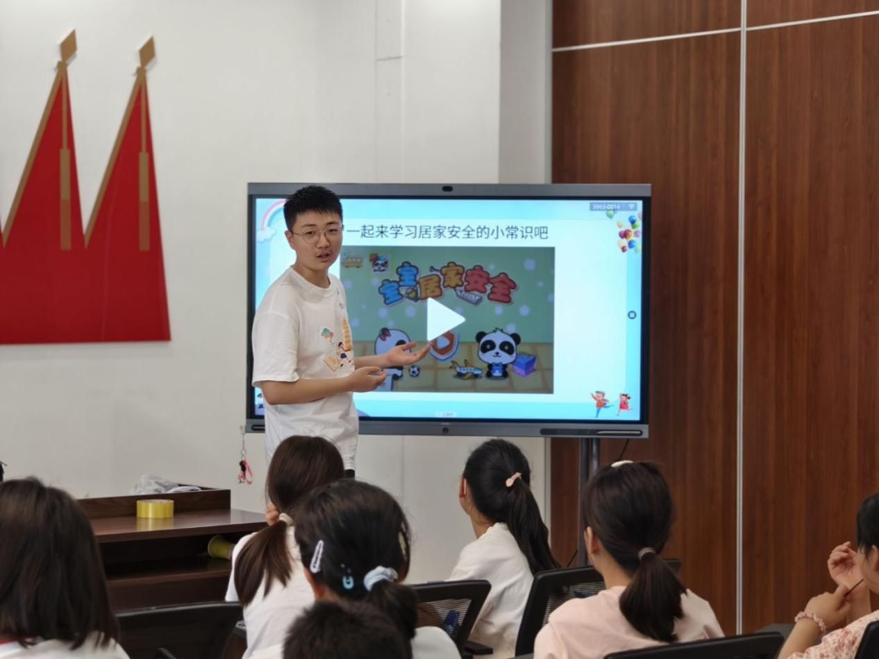团委书记杨子熙和志愿者向家长和孩子们详细介绍了本次志愿服务项目的课程安排和活动亮点。杨子熙强调大学生志愿者在服务过程中的责任与使命,鼓励他们用专业知识和热情为孩子们带来一个充实而有意义的假期。