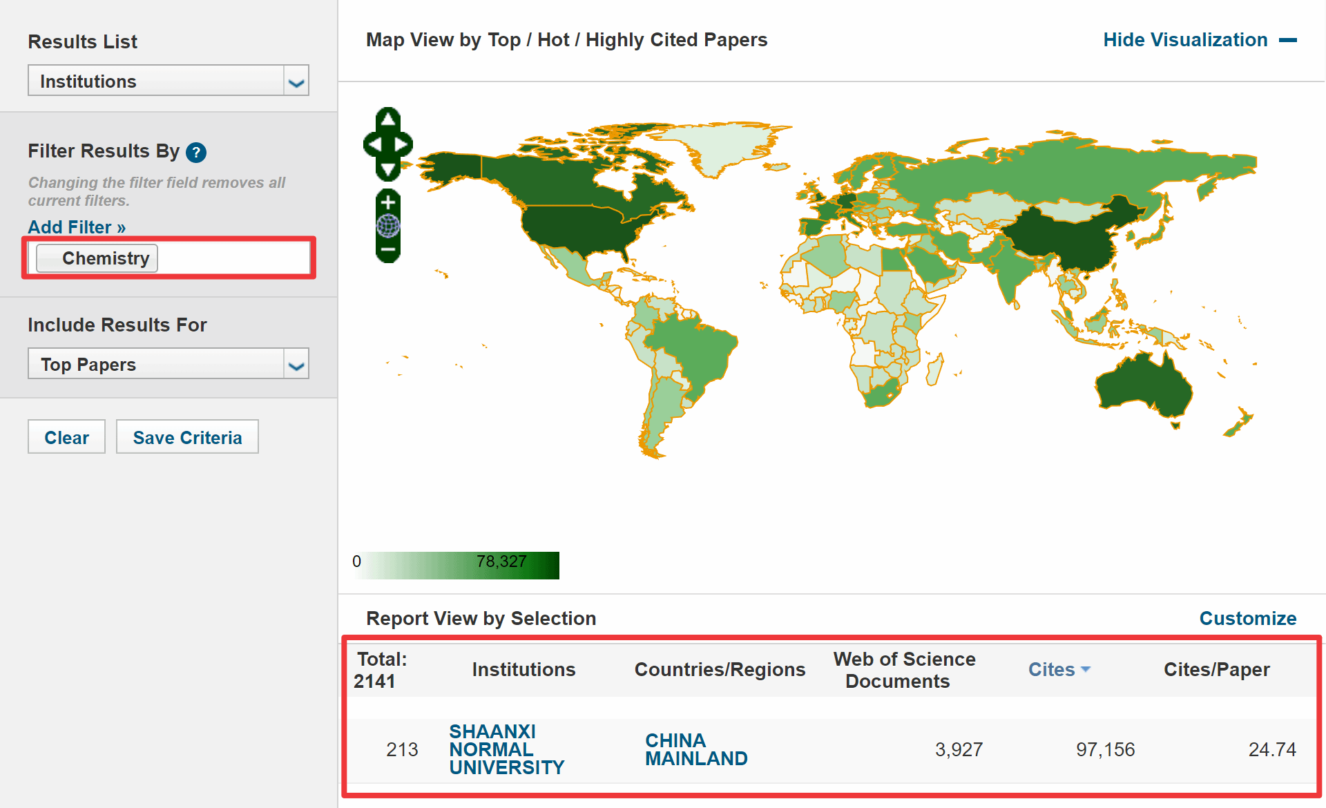 化学学科在Web of Science上共发表3927篇论文,总被引频次高达97156次,平均每篇论文被引频次为24.74次,充分体现了我校化学学科的学术实力和影响力。