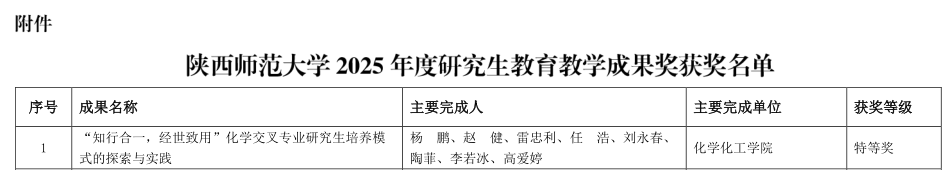 生物表界面与智能大分子研究团队杨鹏教授牵头申报的成果《“知行合一,经世致用”化学交叉专业研究生培养模式的探索与实践》获特等奖。