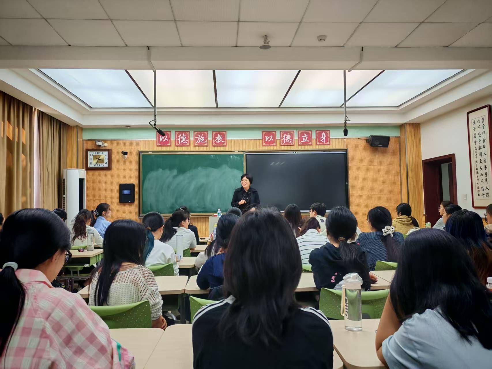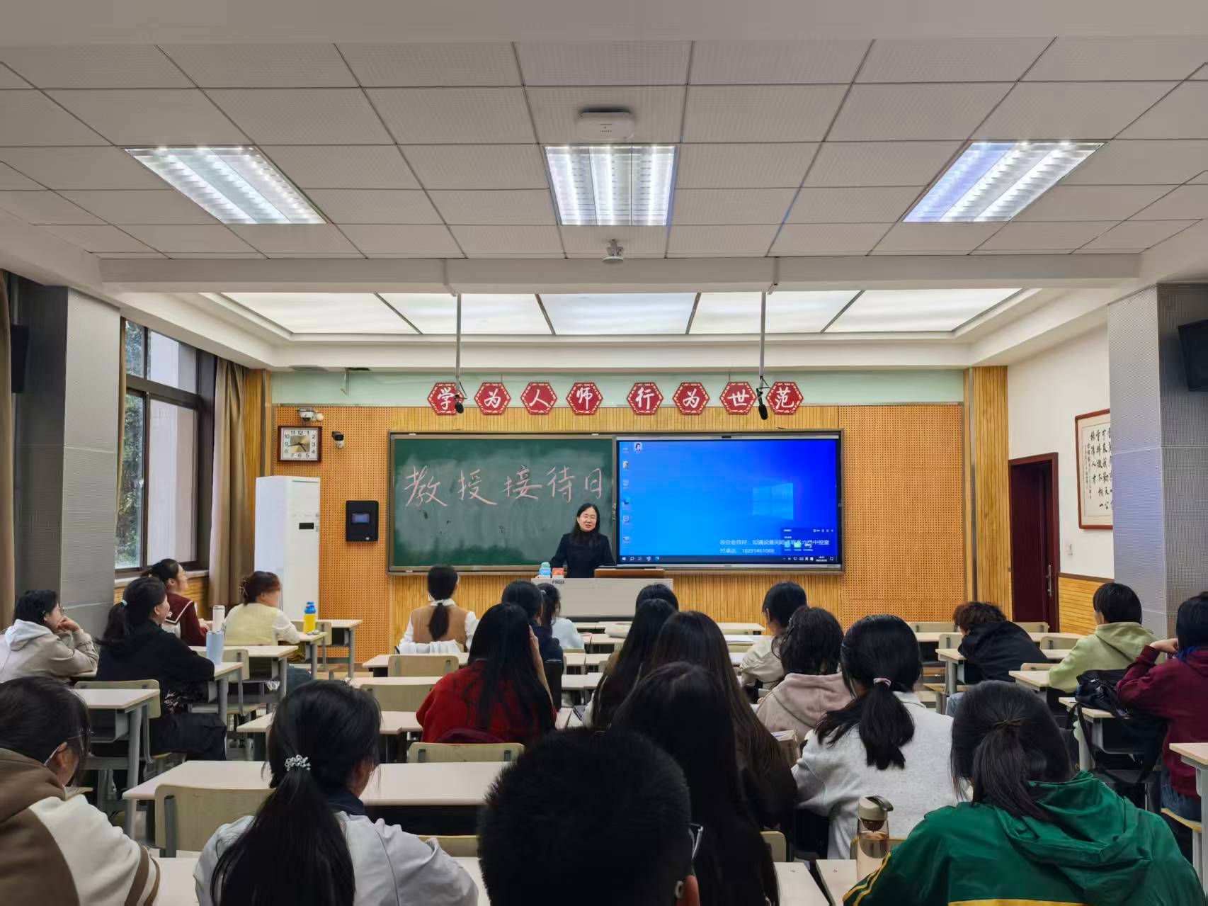 9月22日,化学2403班在雁塔校区教学八楼8305教室举办“教授接待日”活动,丁立平教授应邀参加。丁教授围绕个人教育梦想转变,分享自己的求学经历,向同学们强调学好专业知识的重要意义,鼓励同学们面对困难要努力奋斗,把握机遇。在向同学们介绍她所研究的胶体界面化学和荧光传感体系时,指出科研探索的重要性。她鼓励同学们要珍惜教育机会,为社会做出贡献,促进个人和社会的发展。