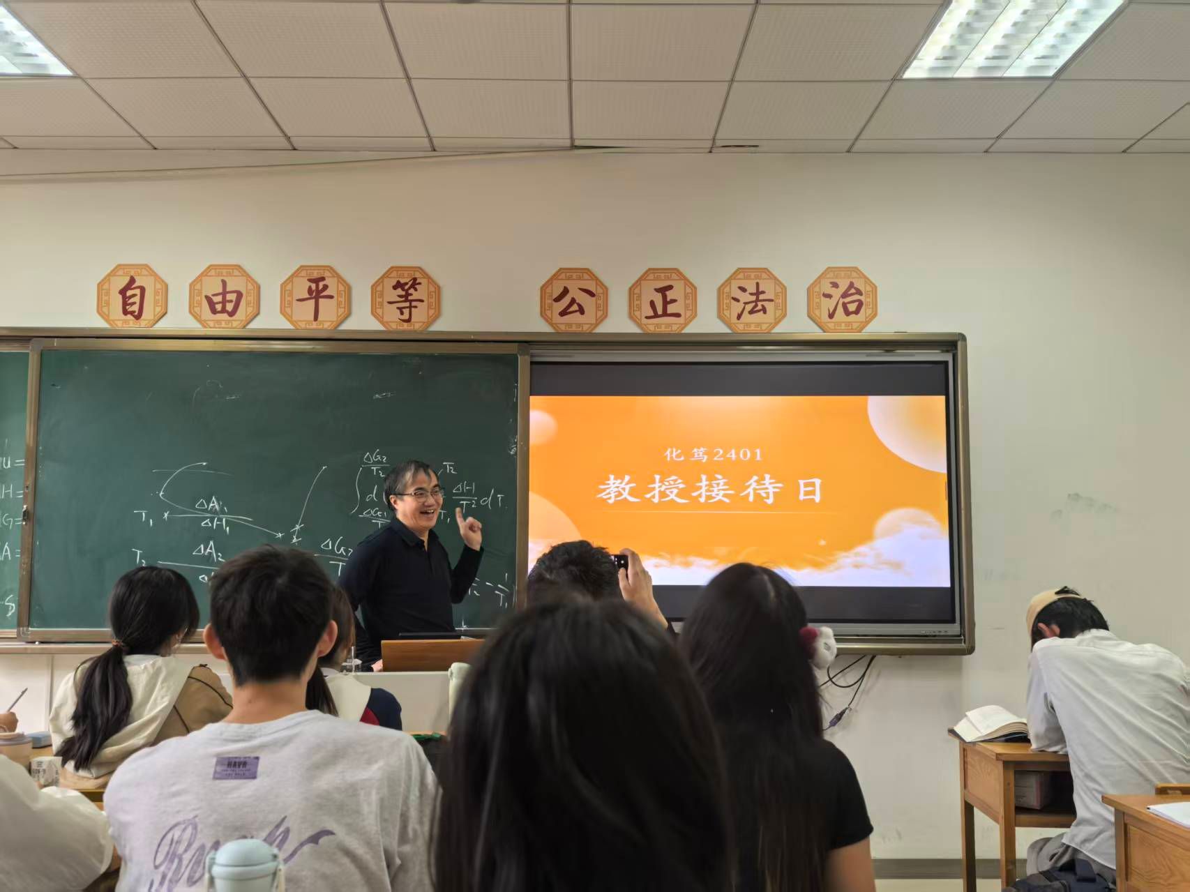 9月26日,化笃2401班在教学五楼5307教室开展了教授接待日活动,白云山教授应邀参加。同学们围绕近期学习困惑踊跃提问,白教授围绕自身在物理化学领域的研究成果与教学经验,以通俗语言拆解复杂概念,解答问题并分享学习方法。此次活动有效解决了同学们在物理化学学习中的共性问题,帮助学生理清知识脉络、提升学习能力与科研信心,同时拉近师生距离,营造了浓厚的班级学术氛围,为同学们专业成长提供有力支撑。
