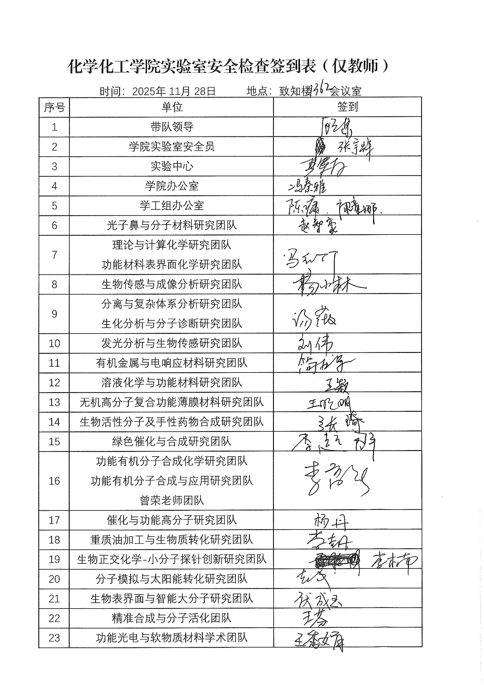 11月28日,学院组织开展实验室安全检查工作。学院副院长顾泉、应用表面与胶体化学教育部重点实验室副主任严军林、各科研团队教师代表、学院党政办公室和学工组办公室工作人员以及学生代表等40余人参与本次安全检查。
