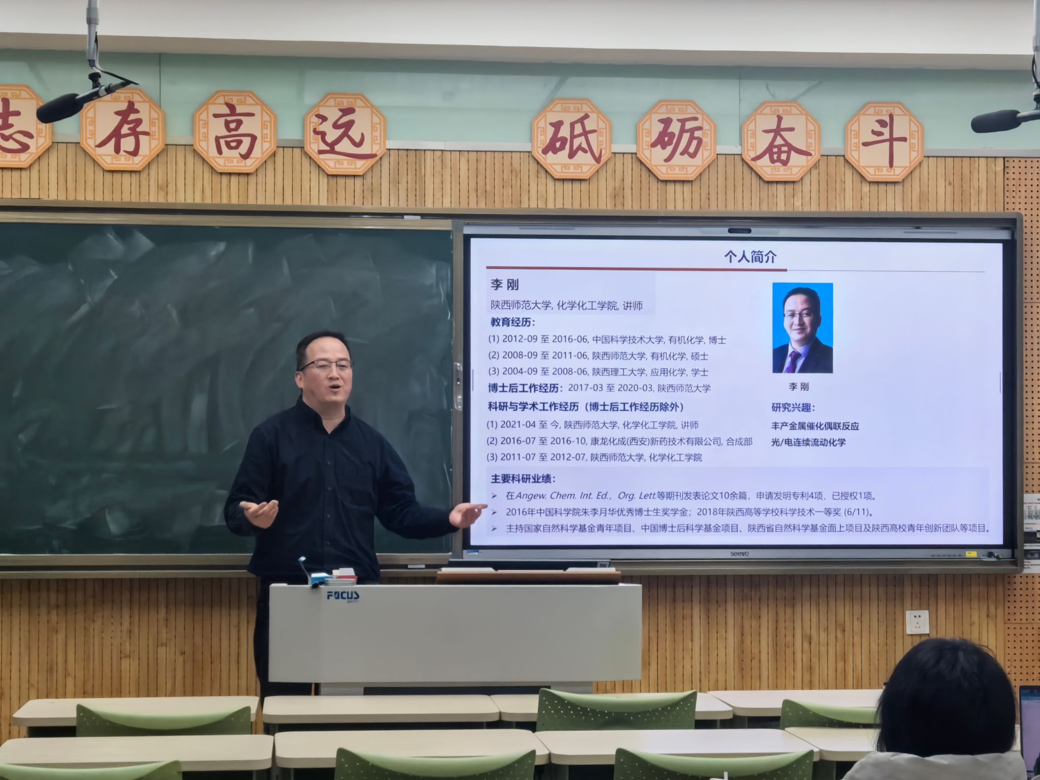 11月7日,李刚老师参加了应化2401班“教授接待日”活动。他以“丰产金属催化有机合成化学”为主题,结合自身多年的科研经历,为同学们带来一场干货满满的分享。他着重强调,本科阶段是筑牢专业根基的关键时期,鼓励大家主动投身科研实践,在探索中提升综合能力。针对学业规划与职业发展,建议同学们科学合理制定目标计划,始终保持对未知领域的探索热情,以扎实的学识储备和积极乐观的心态直面竞争与挑战,在逐梦路上稳步前行,实现自身人生价值。