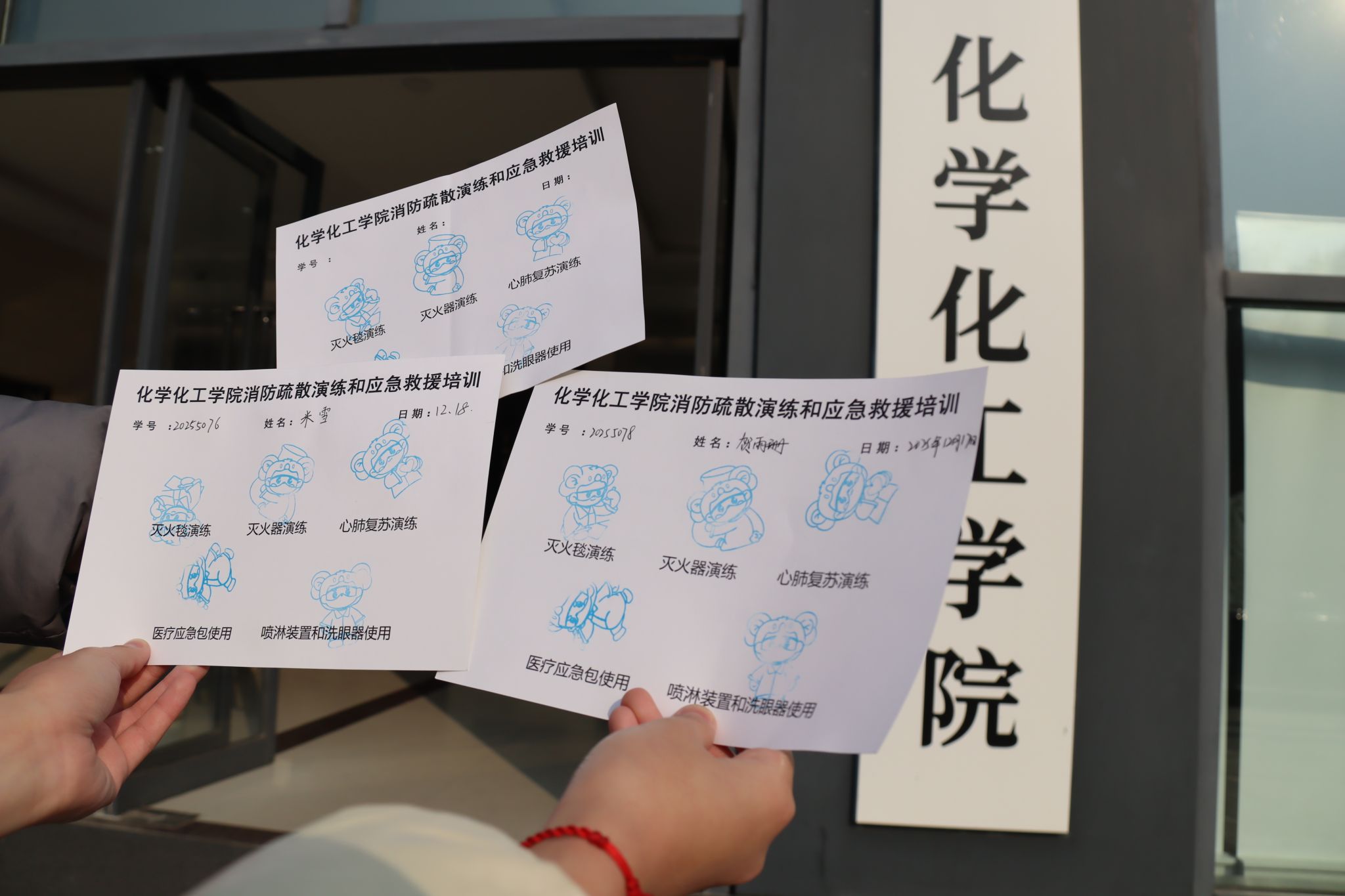 消防疏散演练和应急救援培训卡” 集章打卡模式,参与者每完成一项培训内容,工作人员即在卡片对应位置加盖学院 IP 形象 “化小星” 专属印章,有效激发了学生参与热情。
