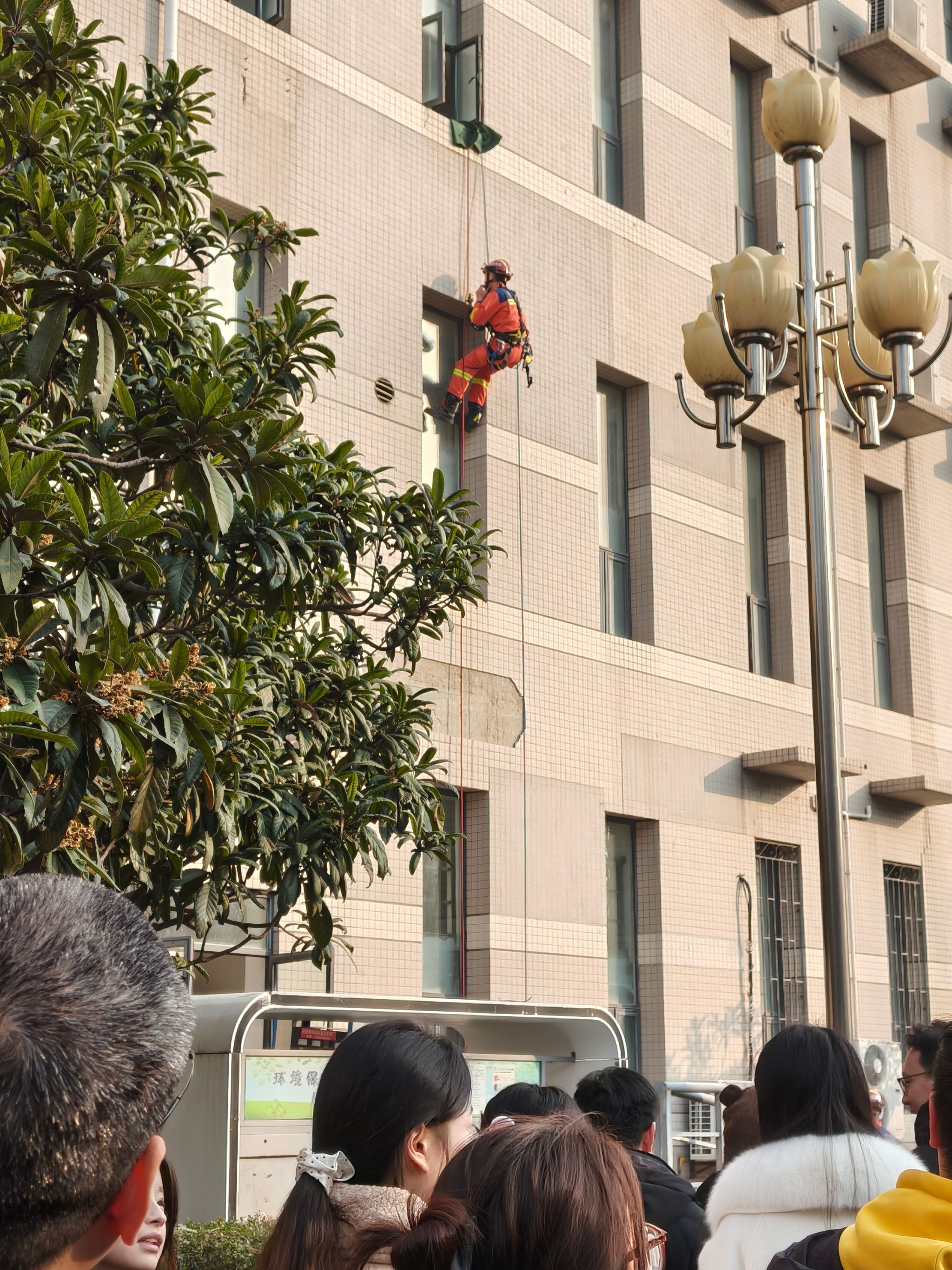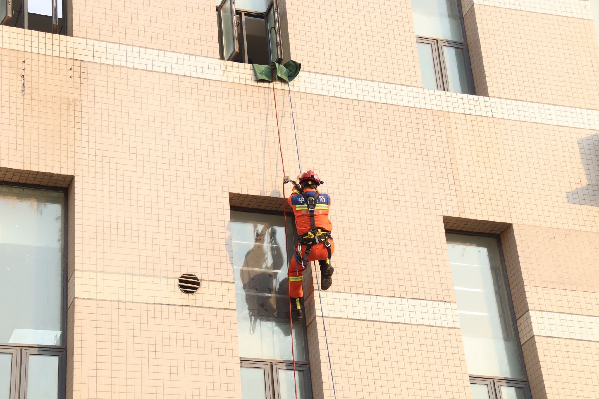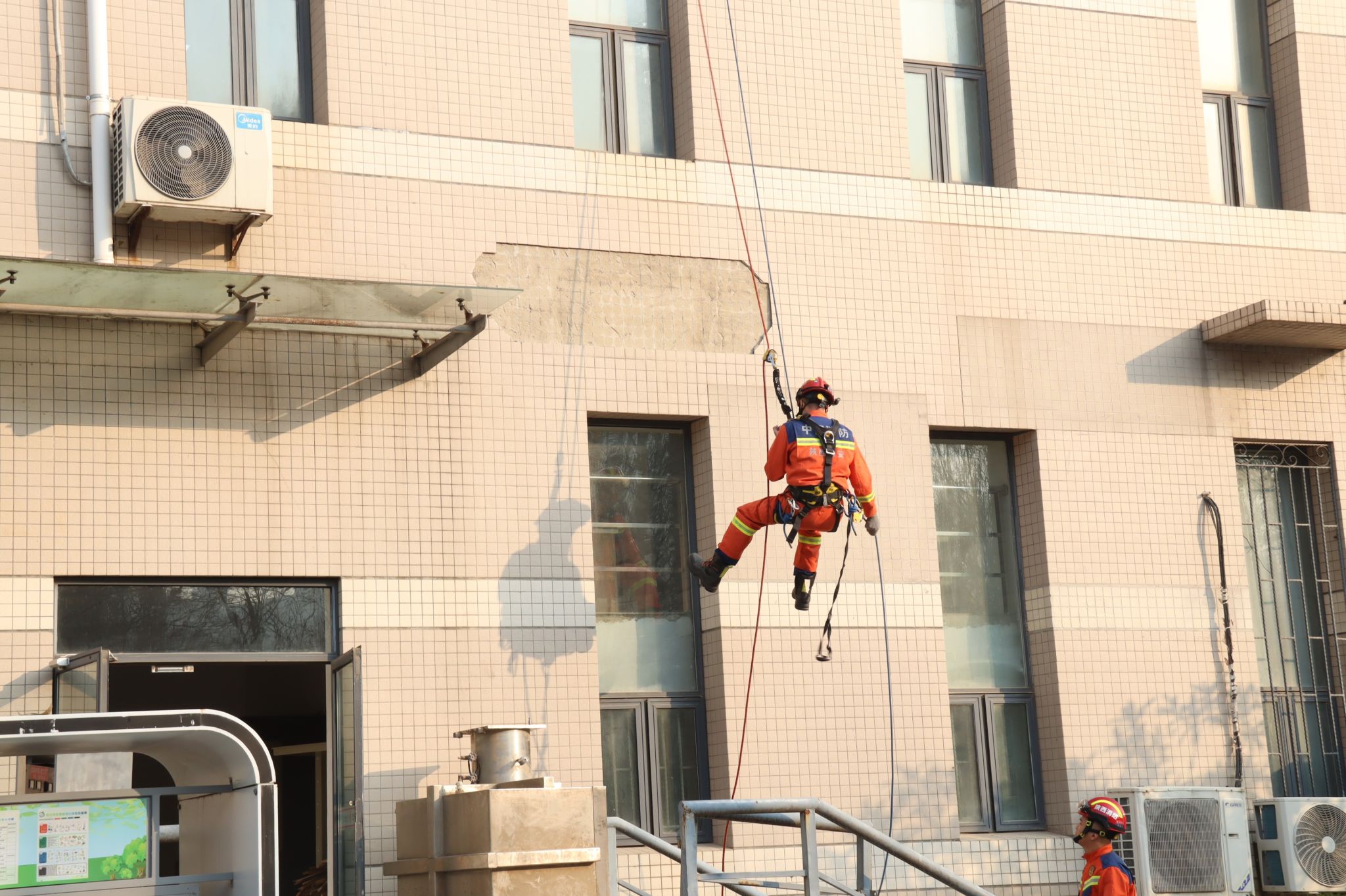 针对高层建筑火灾逃生这一重点环节,学院特别邀请长安区消防大队翰林南路消防救援站队员现场教学高空速降逃生技能。队员王杰详细讲解速降动作技术要领、安全绳锁使用方法及适用场景,示范员陈俊进行现场展示,为师生传授了专业实用的逃生知识,助力师生掌握保障生命安全的关键技能。