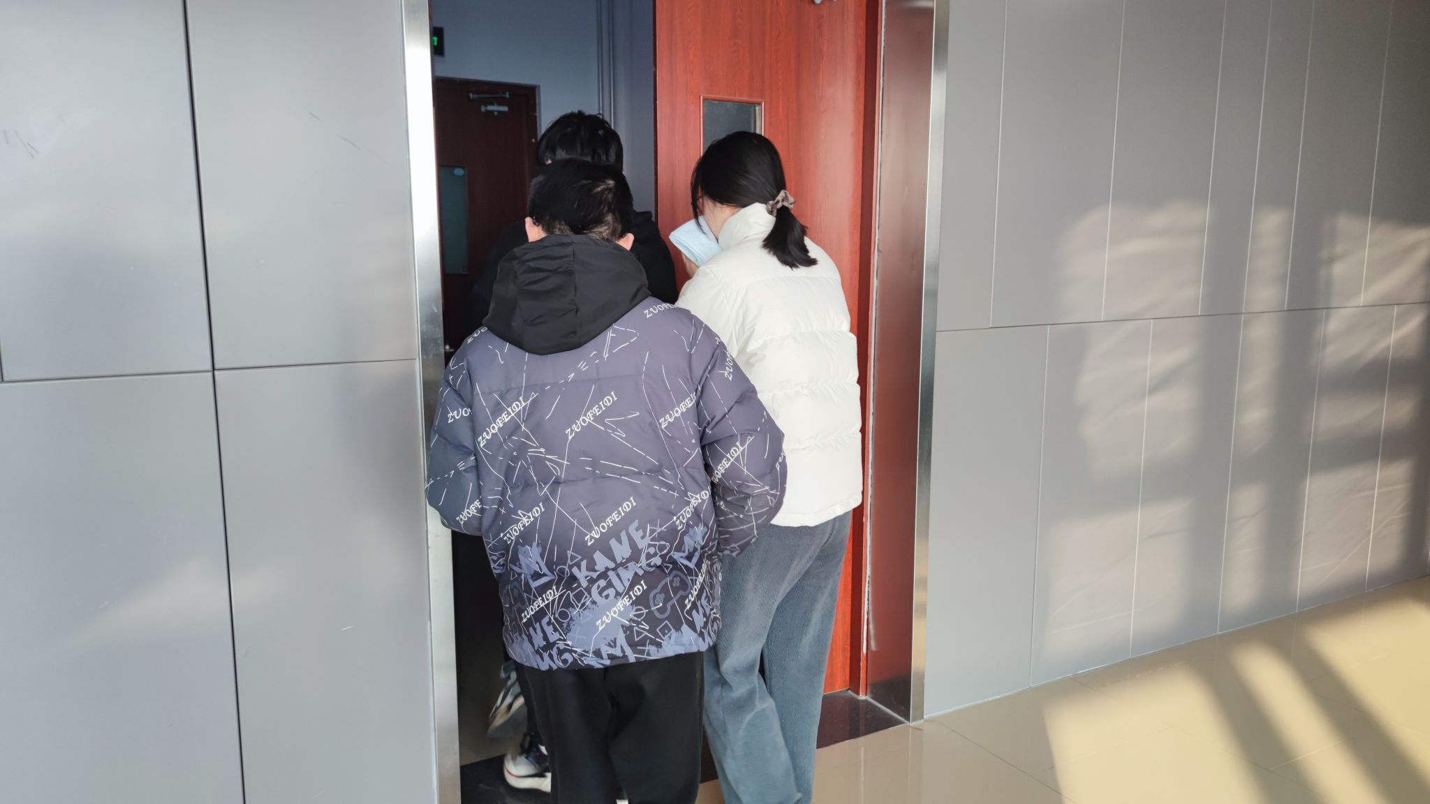 本次活动分阶段有序推进。上午7:00,工作人员在致知楼南门通过二维码精准统计入场人员,同步发放消防安全物资,为演练顺利开展奠定基础。9:30,总指挥肖新军发布应急疏散指令,各楼层迅速启动烟雾发生器并拉响警报,应急疏散环节全面展开,引导师生员工采取“打湿毛巾、捂住口鼻、弯腰靠右、有序下楼”的科学逃生方式撤离。整个疏散过程高效有序,仅用时4分53秒,共安全疏散人员818名。