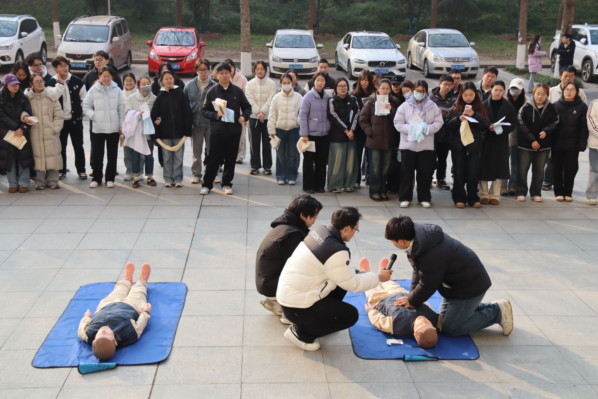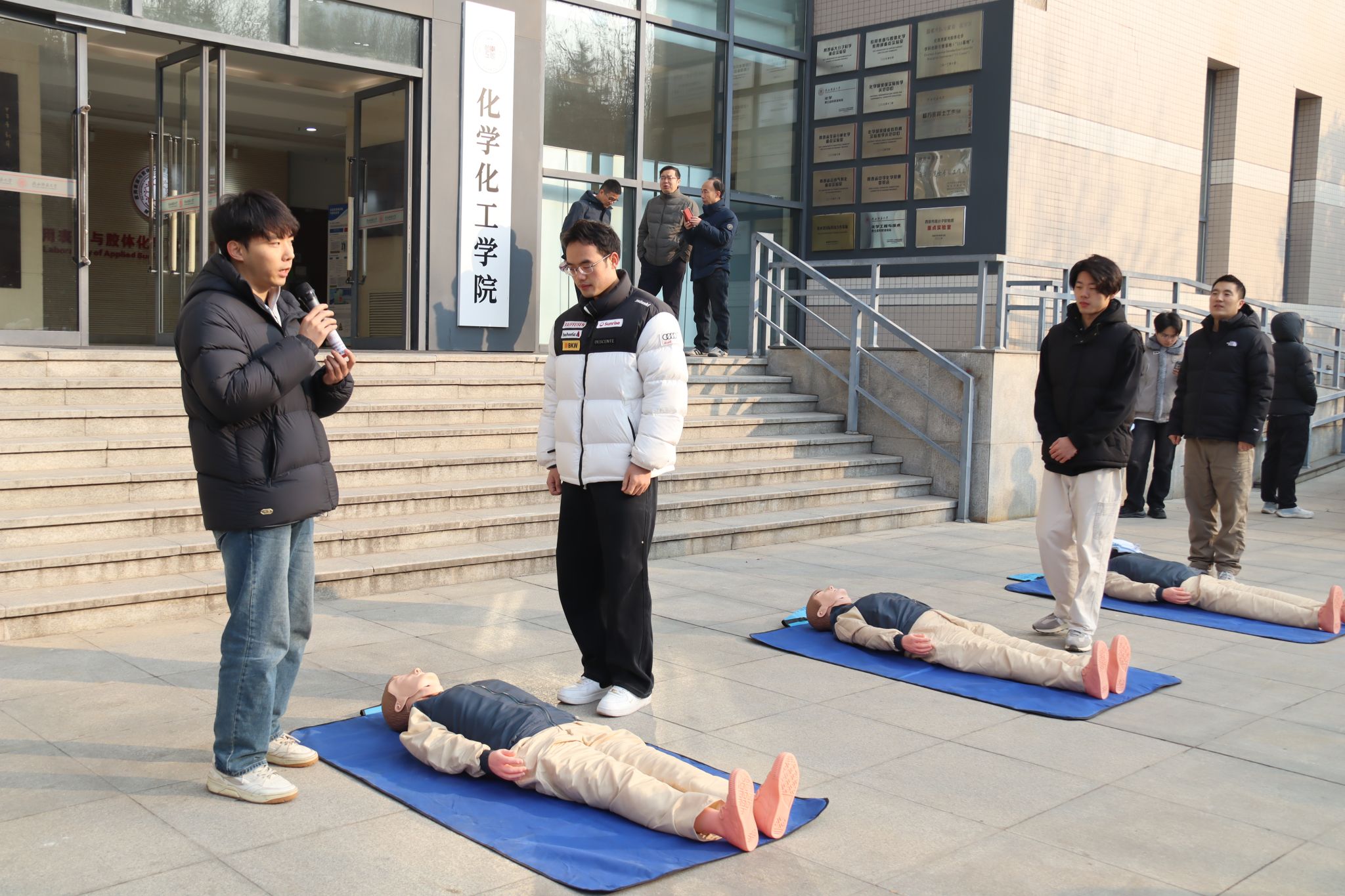 第二阶段专项应急救助培训面向全院研究生及教职工分组开展,涵盖三大板块内容:一是灭火项目培训,包括灭火毯、灭火器实操演练;二是医学紧急救助培训,涵盖心肺复苏和医疗应急包使用;三是喷淋装置和洗眼器使用培训。培训中,校医院外科大夫李米红针对实验与火灾场景中的常见外伤,详细讲解了关键急救步骤,并现场演示了医疗应急包内物品的规范使用方法;体育学院研究生王一凡按照 “判断患者反应、纠正患者体位、判断脉搏、胸外按压、开放气道、人工呼吸”6 个步骤,现场示范心肺复苏关键急救技术;实验中心相关老师详细演示灭火器、灭火毯等消防器材使用方法及注意事项;各楼层负责老师全程指导监督喷淋和洗眼器装置使用,确保参训人员逐一完成理论学习与实践操作。为提升培训互动性与参与度,本次培训创新采用 “香蕉视频