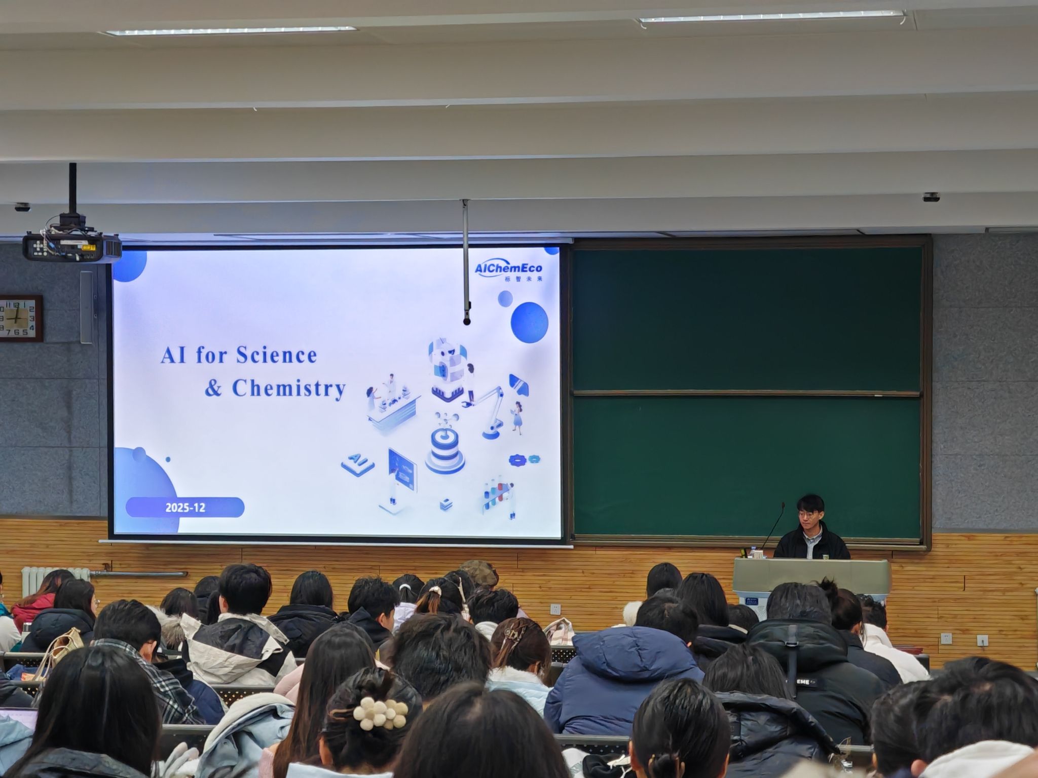 “AI+化学”前沿交叉课程正式开课。课程首讲特邀广州国家实验室助理研究员张崇焕博士主讲,内容涵盖AI for Science & Chemistry、化学数据与数据库、特征工程与描述符、数据可视化、正向预测和逆合成分析等六大模块,系统展示了人工智能技术发展以及如何深度赋能现代化学研究。本次课程采用“线下主场+线上开放”的教学形式,线下面向香蕉视频