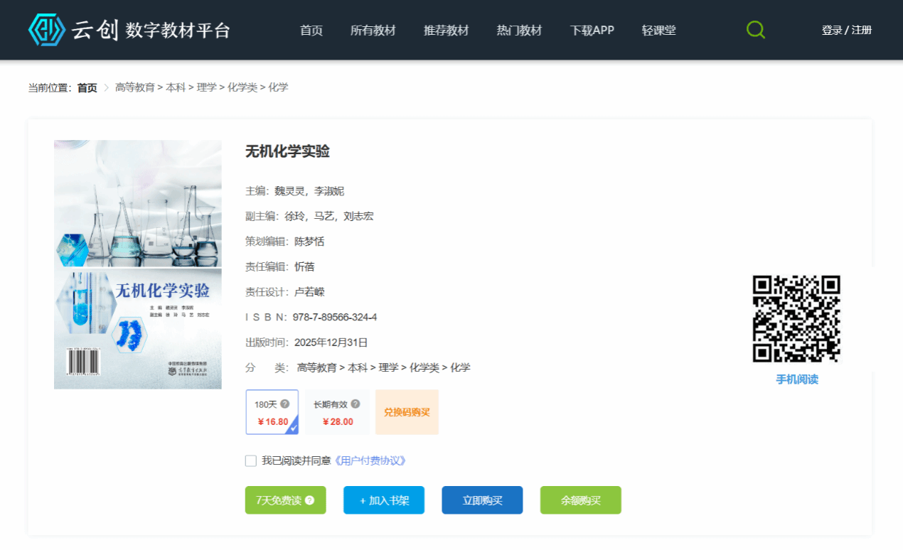 《无机化学实验》数字教材网址://etextbook.hep.com.cn/book/1458010287394258944