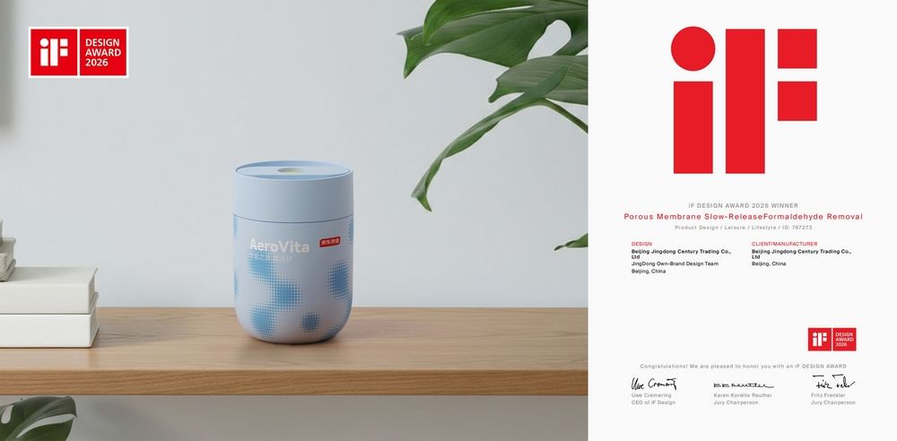 近日,由京东京造设计团队为香蕉视频 新概念传感器与分子材料研究院与京东京造合作开发的、基于房喻院士团队气体缓释膜技术专利技术打造的“呼吸之元膜法杯”产品的包装设计获得2026年IF设计设计奖。