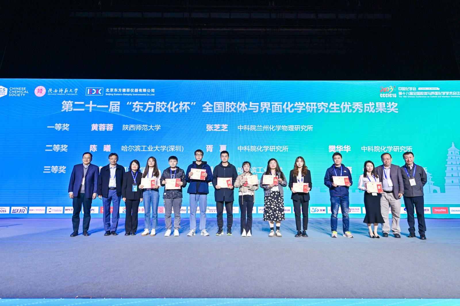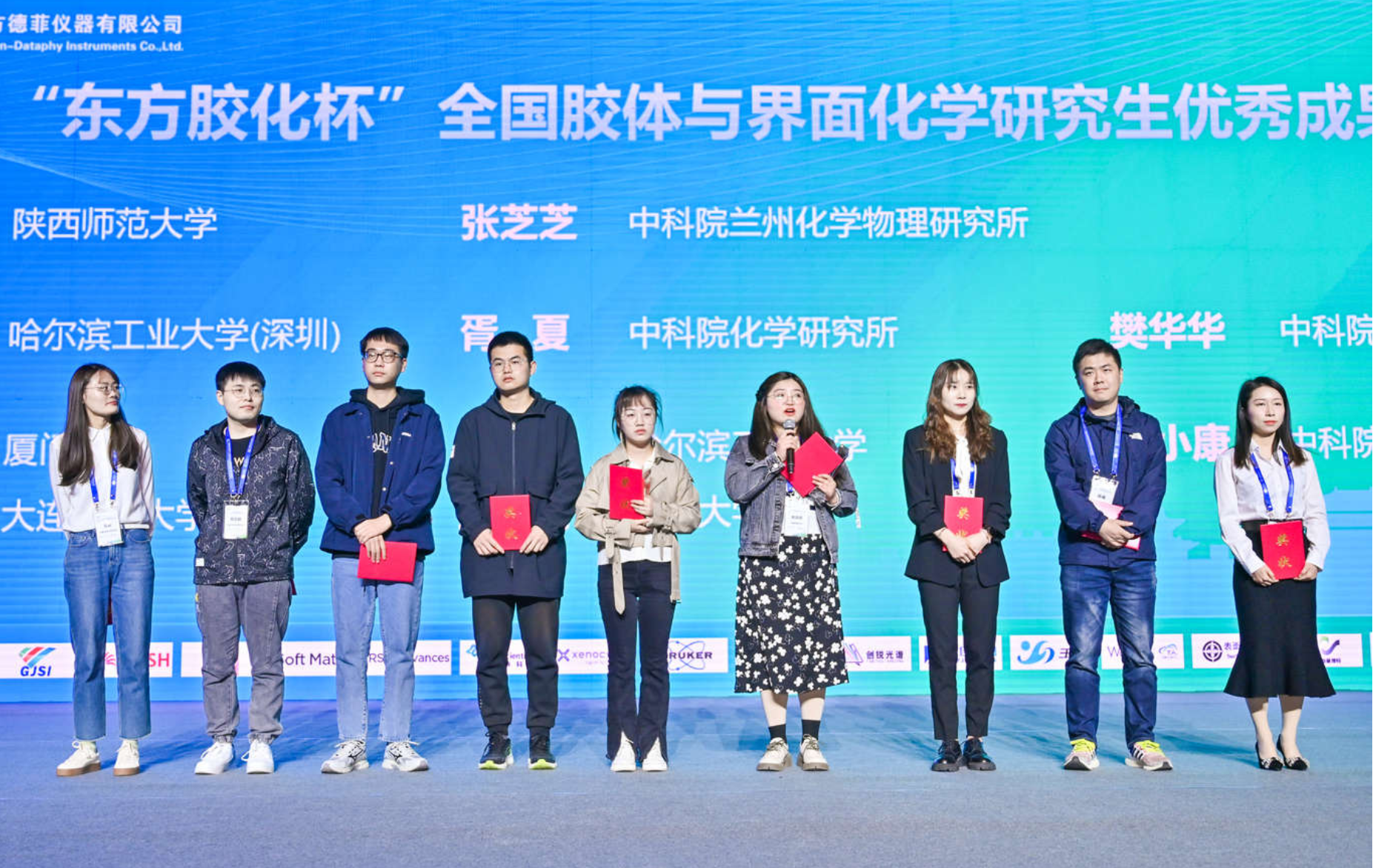 黄蓉蓉、中科学院兰州物理化学研究所张芝芝获第二十一届“东方胶化杯”全国胶体与界面化学研究生优秀成果一等奖,哈尔滨工业大学(深圳)陈曦、中科院化学研究所胥夏与樊华华获二等奖,厦门大学余诗洁、哈尔滨工业大学刘君、中科院过程工程研究所任小康、大连理工大学李冲、天津大学王朝获三等奖。房喻院士等专家为获奖代表颁奖,获奖代表分别作了获奖感言。