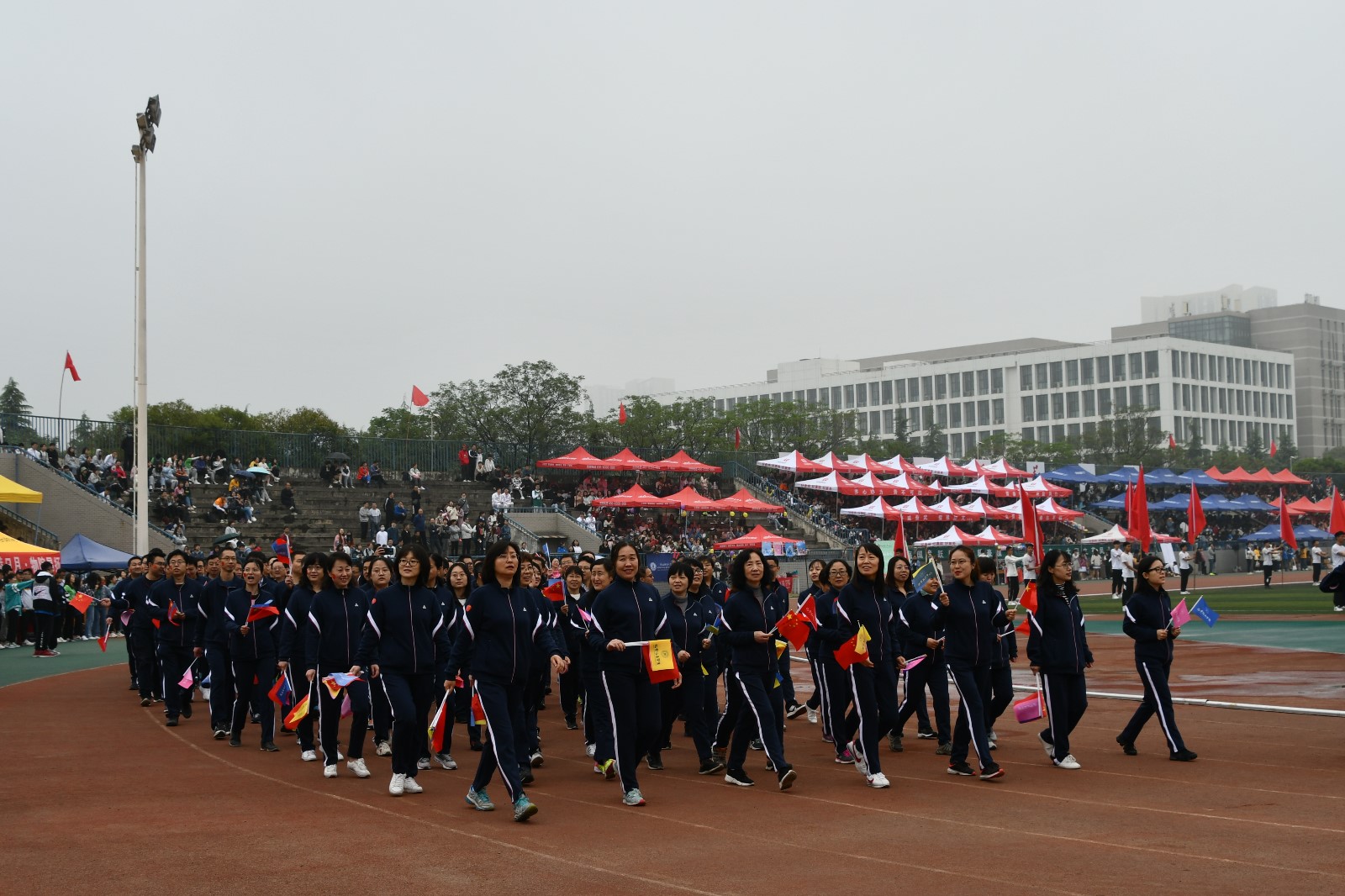 口号震天精神抖,红旗飘扬彩旗簇,不忘初心跟党走,百年征程把梦筑。21日上午8时30分,伴随着激昂欢快的乐曲,由学院学科带头人、优秀骨干教师、高水平创新团队成员、行政管理人员等110名教工组成的方阵,身着统一的运动服,手持各色彩旗,迈着整齐的步伐,昂首走进体育场,充分展现了朝气蓬勃、阳光自信的学院风采。在随后的比赛中,学院教工代表队先后参加了10X50米抱球往返接力、篮球运球投篮接力、追赶超越、跳大绳4个集体项目和其他个人项目赛事,一场比赛,两支队伍,场上是摩拳擦掌、跃跃欲试的参赛队员,场外是热情澎湃、呐喊震天的后援团,无论场上场下,大家都在尽情挥洒汗水、奋勇争先、顽强拼搏,每一场比赛都展示着拼搏向上的精神,每一次呐喊都彰显着青春飞扬的活力,把一次运动会变成了全院师生共同参与的盛宴,变成了对集体荣誉感的最好实践。