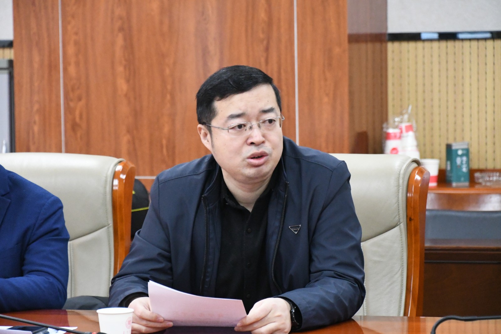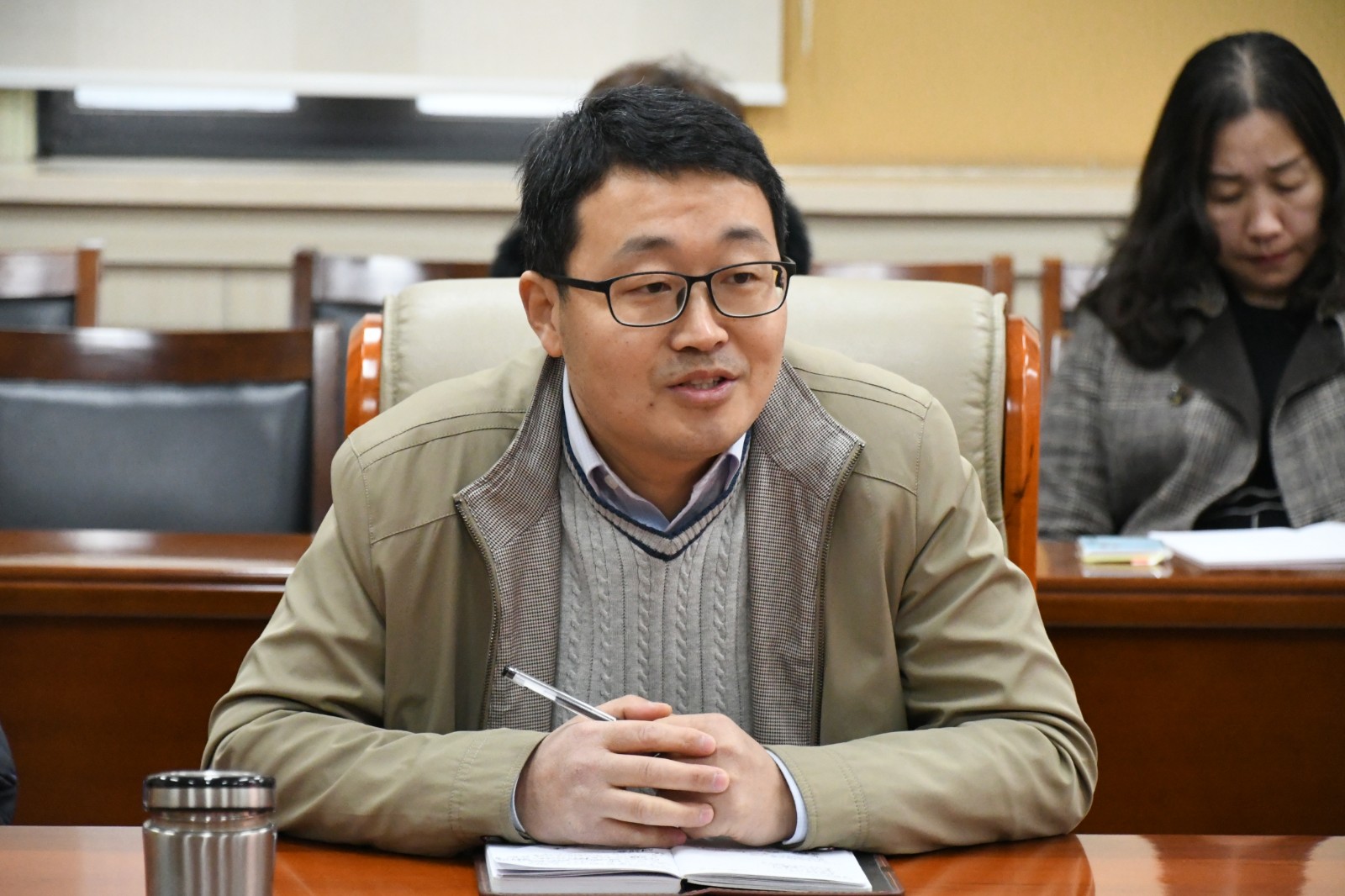 刘成辉总结了2020年度实验中心工作,并根据学校工作安排,结合学院实际情况,专门就实验技术人员职称评审、岗位聘任、实验室安全管理、本科实验教学、大型仪器平台运行与绩效管理、实验室日常管理以及化学国家级实验教学示范中心/国家级虚拟仿真实验教学中心建设等方面工作做了部署安排。随后,刘成辉代表学院宣读了师化院〔2021〕1号文件《关于严军林同志担任化学国家级实验教学示范中心办公室主任的通知》,并希望达龄退休的杨文玉老师继续为学院建设和中心发展发光发热。杨文玉老师感谢学院对自己工作的肯定,自己也将一如既往的做好学院实验室建设与管理工作,同时还讲到实验中心工作应注重成果总结和综合服务能力,进一步加强自身专业技能,这样才能更好的为学院发展、中心建设做出贡献;严军林感谢学院的信任,表示将尽快进入状态,为学院人才培养、学科发展、中心建设以及科学研究做好保障工作。
