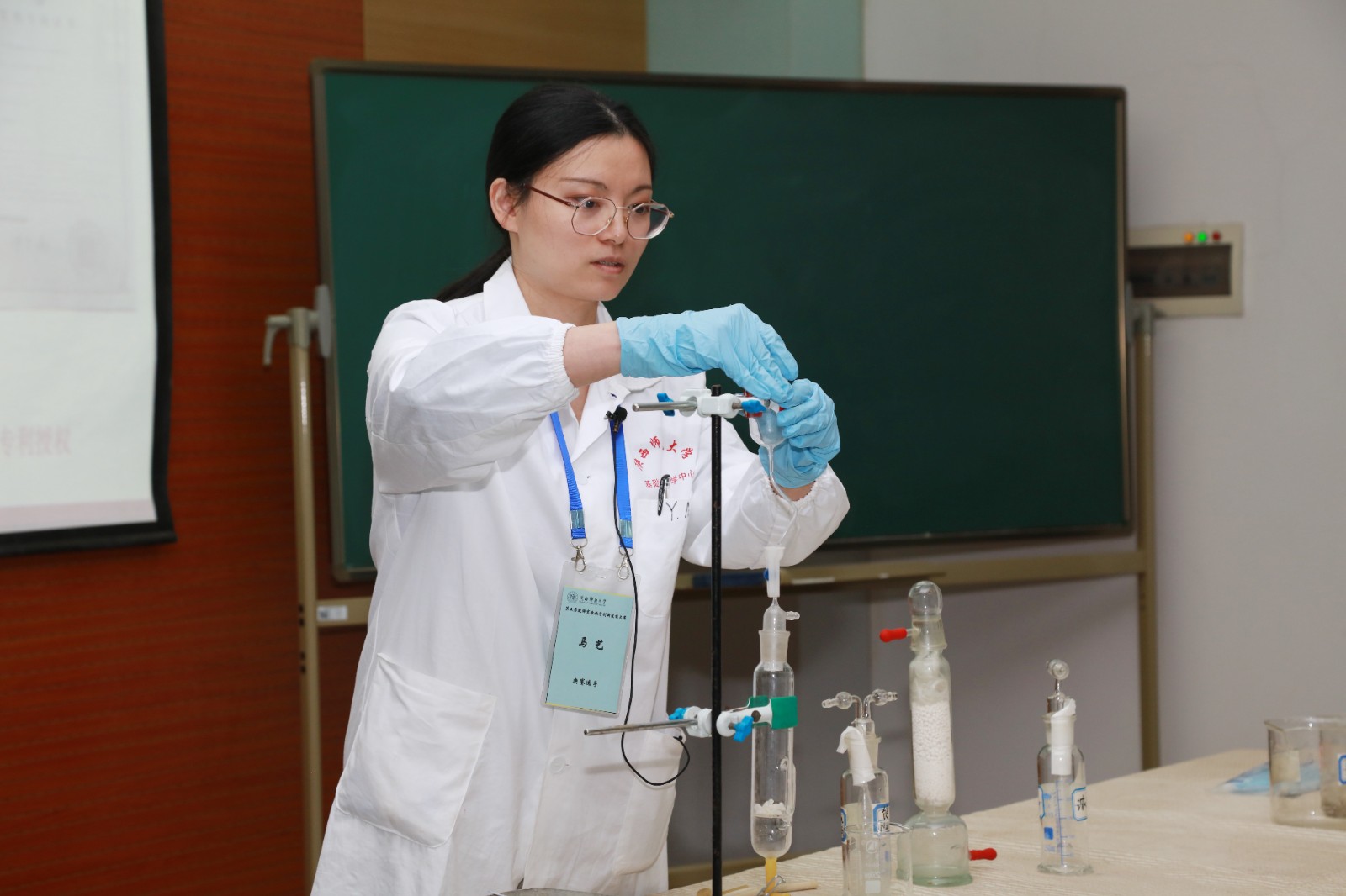 马艺副教授讲授的无机化学实验“二氧化碳分子量的测定”,李高强副教授讲授的有机化学实验“薄层色谱”充分展示了各自教学特色和风采,讲课条理清晰、实验操作熟练,得到在场评委一致好评,分获比赛一、二等奖。