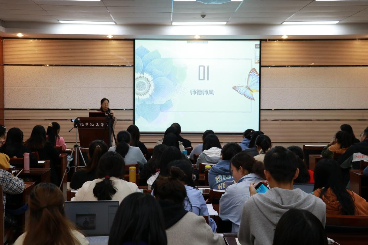 师范专业学生做了题为“砥砺前行,破茧成蝶”的讲座。学院师范专业全体本科生、研究生通过线上线下两种方式参加,活动由2018级化学卓越教师实验班班主任杨承印教授主持。