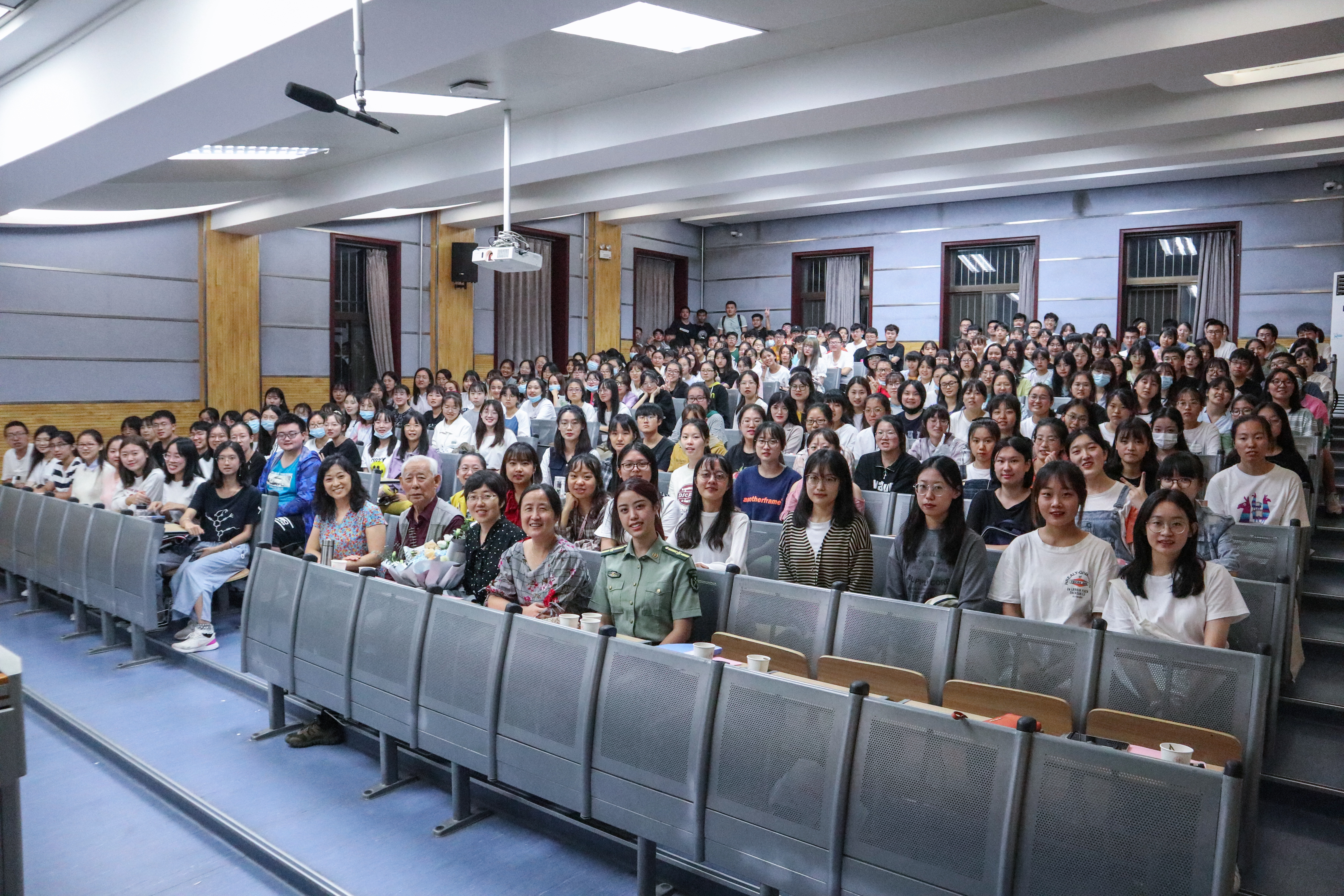在热烈的氛围中,高玲香书记通过讲述学院发展历史与学科队伍建设历程,介绍了“滴水”奖学金的发起缘由与评选办法。薛封和老师为13名获奖学生颁发荣誉证书并讲话,他用亲切的话语分享个人亲身经历与多年教学心得,在黑板上郑重地写下了“感恩”二字,以此向同学们提出期许,一是要不忘历史、牢记党恩,尤其是在举国同心对抗疫情的战斗中感受中国制度优势,坚定爱国主义信念,勇敢肩负起时代发展和民族复兴的大任;二是要牢记身份、坚守传统,坚定文化自信,做中华优秀传统文化的忠实传承者和弘扬者;三是要不忘初心,锤炼本领,不断扎实学识与技能,让梦想在砥砺中前行。刘伟老师代表全体师生向薛封和老师献花,致以诚挚敬意和衷心感谢。