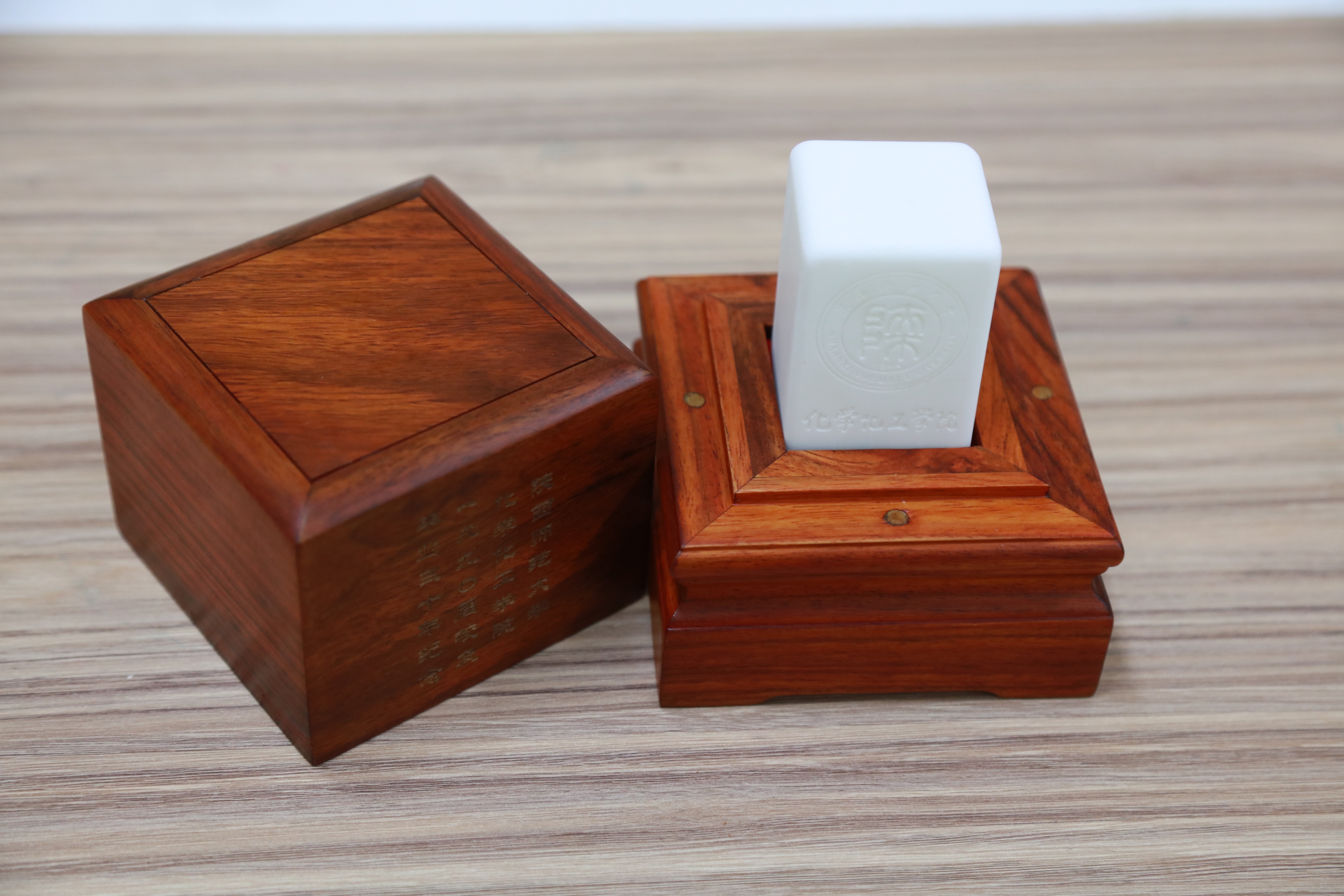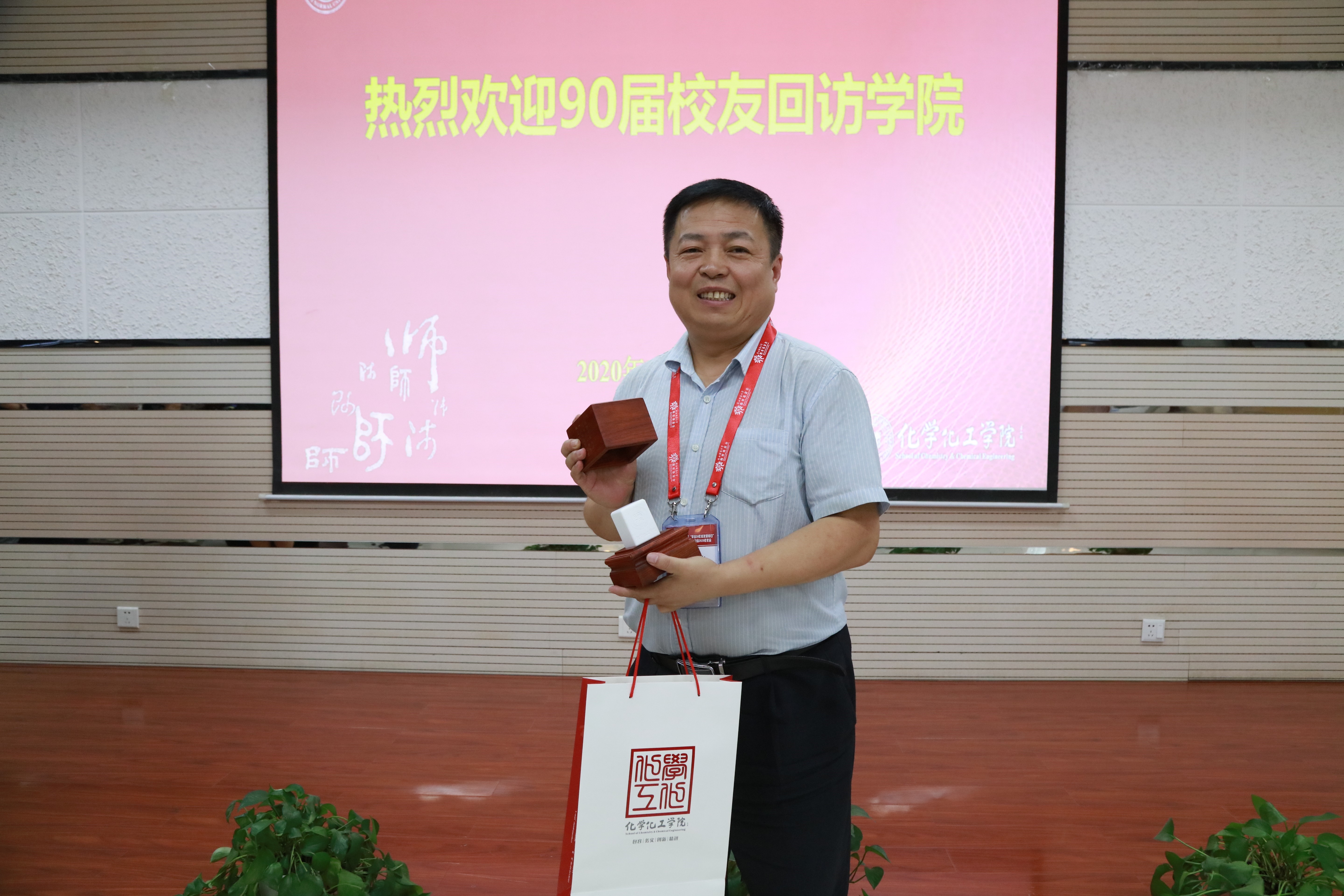 房喻教授科研团队创制的新材料刻制的印章纪念品,表达学院对校友的欢迎和牵挂。学院每一位90届校友都拥有了这枚独一无二的刻印自己名字的印章。