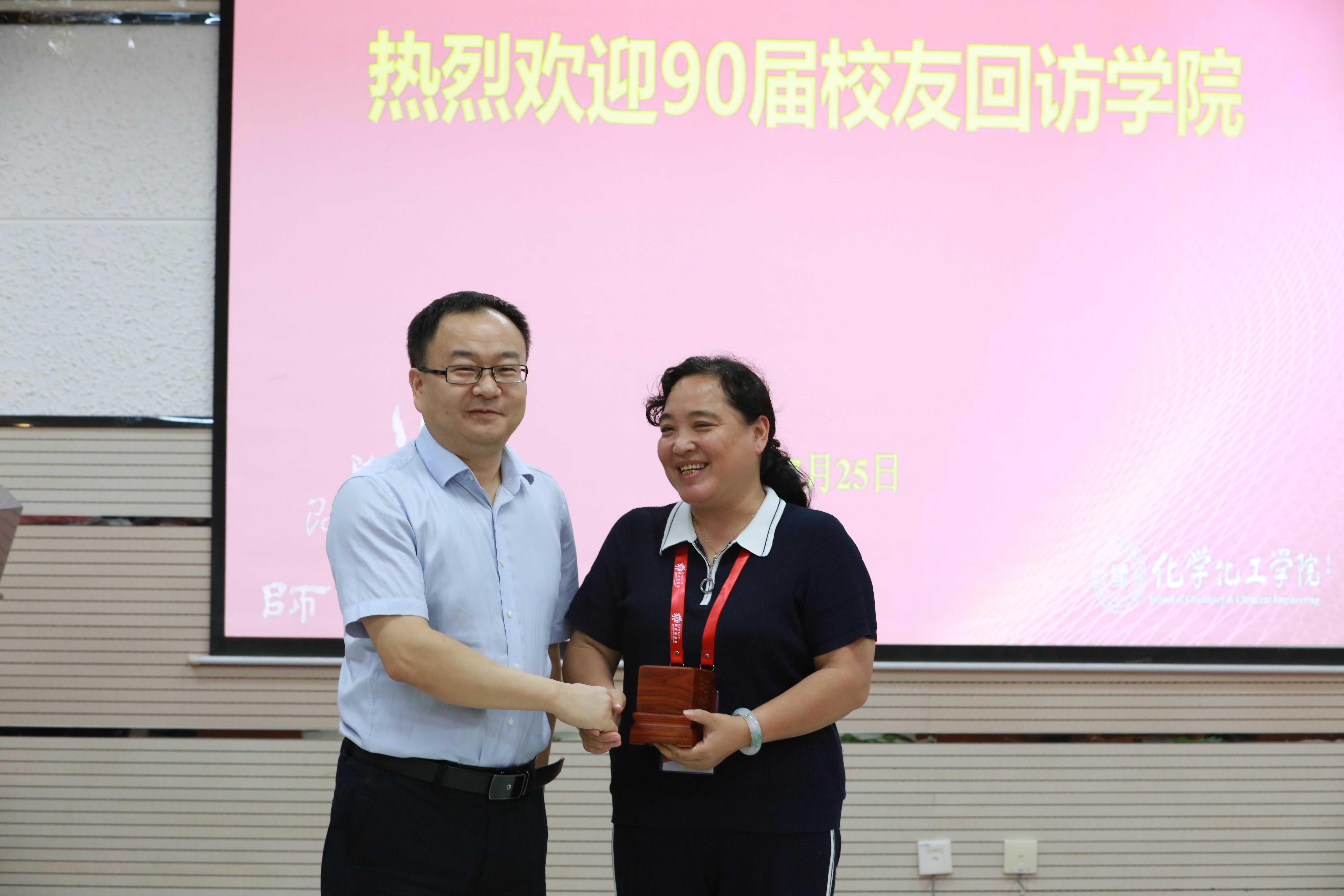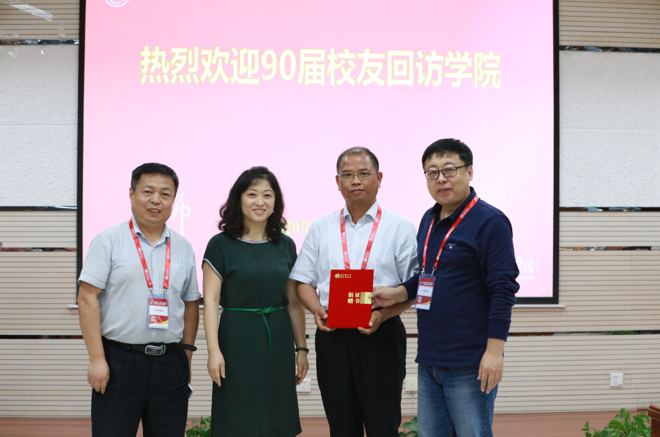 首先,高玲香书记分别从学科发展足迹、师资队伍现状、教学科研成果和人才培养成绩等方面向90届校友介绍了学院的情况。高书记谈到,七十年来,师大化学人时刻坚守着西部红烛精神,用最朴实的双手书写最不平凡的教育事业,他们的成就为推动学院和学科的发展贡献力量、增光添彩,使学院和学科成为校友们的骄傲与自豪,是校友们的坚强后盾,同时也希望校友能够关注学院、为学院发展特别是人才培养贡献力量。院长薛东重点从学院师资队伍建设、学科评估成果和主动对接国家和区域重大战略需求,实现科技成果转化的重大突破,切实推动“双一流”建设内涵式发展等方面介绍了学院发展优势,希望校友们有更多的学科自信与自豪,带着化学人对学院一成不变的热爱在各自的岗位上继续努力,共同展望未来美好的发展前景。薛院长代表学院向校友代表王琪赠送了由香蕉视频