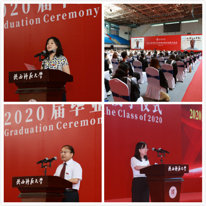典礼上,高玲香宣读了《“卓越教师成长基金”奖学金》的表彰决定和学院第五届“我最喜爱的老师”评选结果,并邀请“卓越教师成长基金”创始人陈亚芍教授为获奖学生颁奖,毕业生代表为获奖教师颁奖。翟全国教授代表全院教师送上临别赠言,希望所有毕业生坚持梦想,从实现一个个目标开始;学会专注,将自己所长做到极致;保持乐观,勇敢面对生活中的任何困难;热爱化学,因为这是我们的生活,我们的未来。2020届本科毕业生代表李汶颖分享了自己对师大的记忆,发出“西部红烛,为祖国闪耀”的青春誓言。研究生毕业生代表庄家宝分享自己在学院度过的三年美好时光,号召全体毕业生心存感恩,为化学事业奋斗终生。