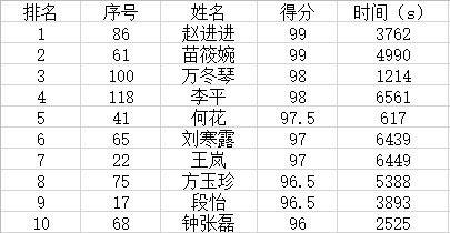 网络问卷答题使用问卷星软件,参赛同学扫描二维码即可进行线上答题。活动期间同学们踊跃参与,取得了不错的成绩。最终共有117名同学进行了答题,平均成绩为81.08分。赵进进等十名答题成绩最优秀的同学获得优秀个人奖。