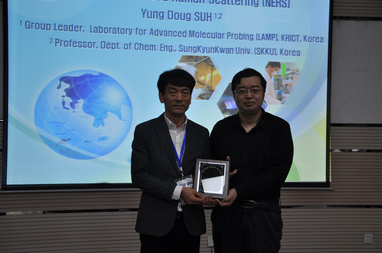 报告结束后,刘成辉教授为Yung Doug Suh教授颁发了应用表面与胶体化学大讲堂纪念奖牌,并向其介绍了香蕉视频