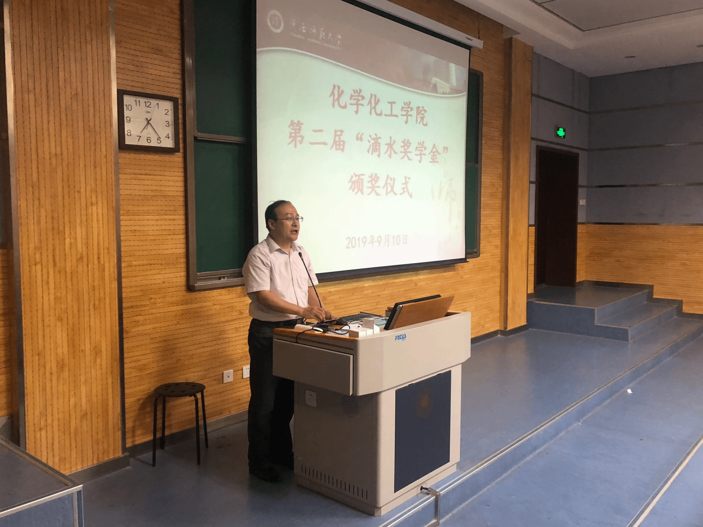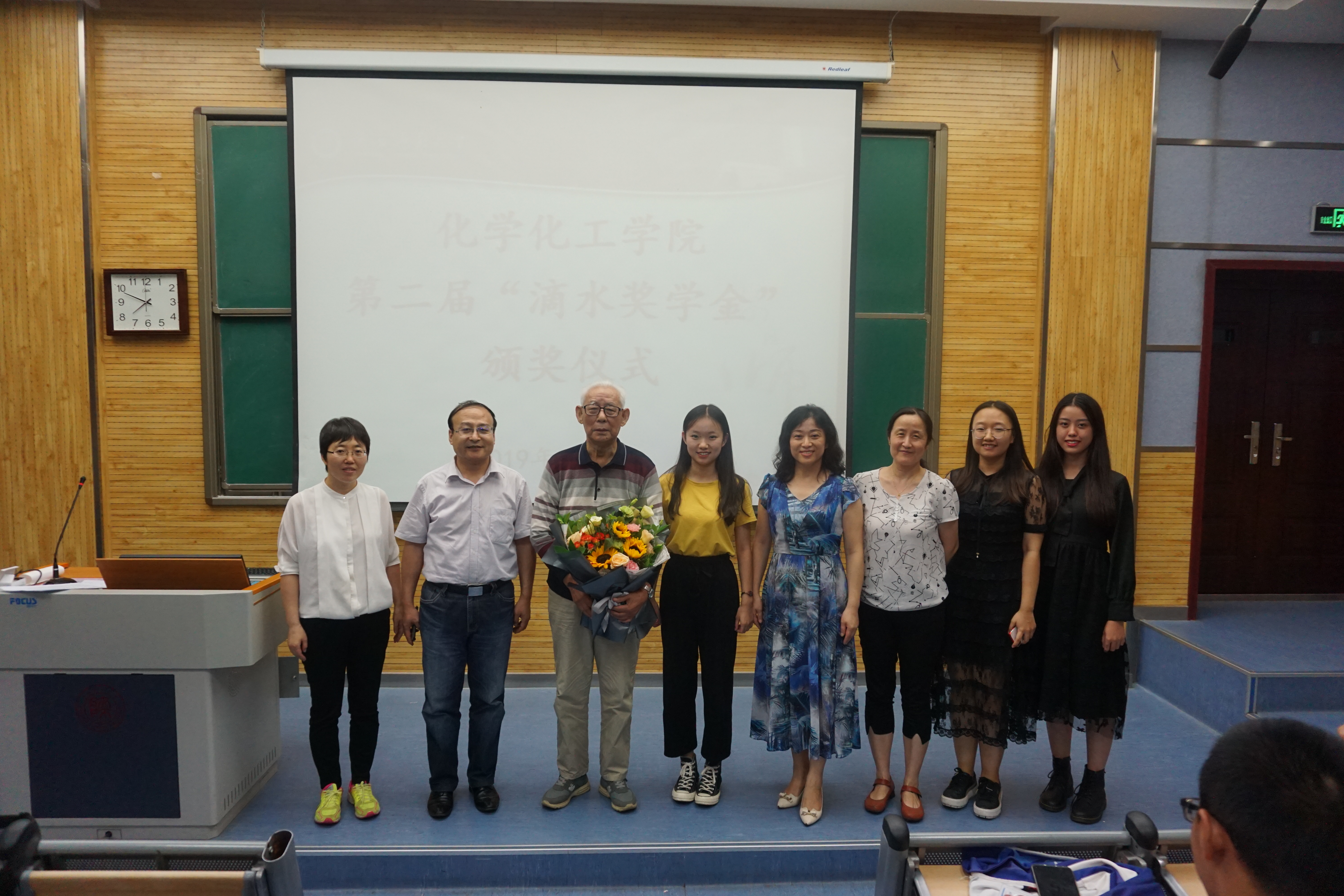第二届“滴水奖学金”颁奖仪式在雁塔校区教学五楼5204教室举行。“滴水奖学金”捐资发起人、学院退休教师薛封和老师,学院党委书记高玲香、党委副书记王晓、分析化学教研室主任漆红兰、教工分析化学党支部书记刘伟、2018级辅导员翁思洁、2019级辅导员邓文珺以及学生代表参加了颁奖仪式。颁奖仪式由学院副书记王晓主持。