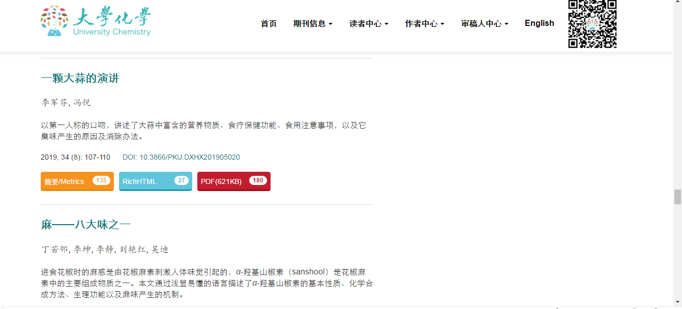 2017级化学卓越教师实验班李军芬和冯悦两位同学共同撰写的科普小论文《一颗大蒜的的演讲》被刊登在《大学化学》期刊的2019年第8期,该期是由北京大学裴坚教授和厦门大学朱亚先教授共同主编的“化学科普”特刊。