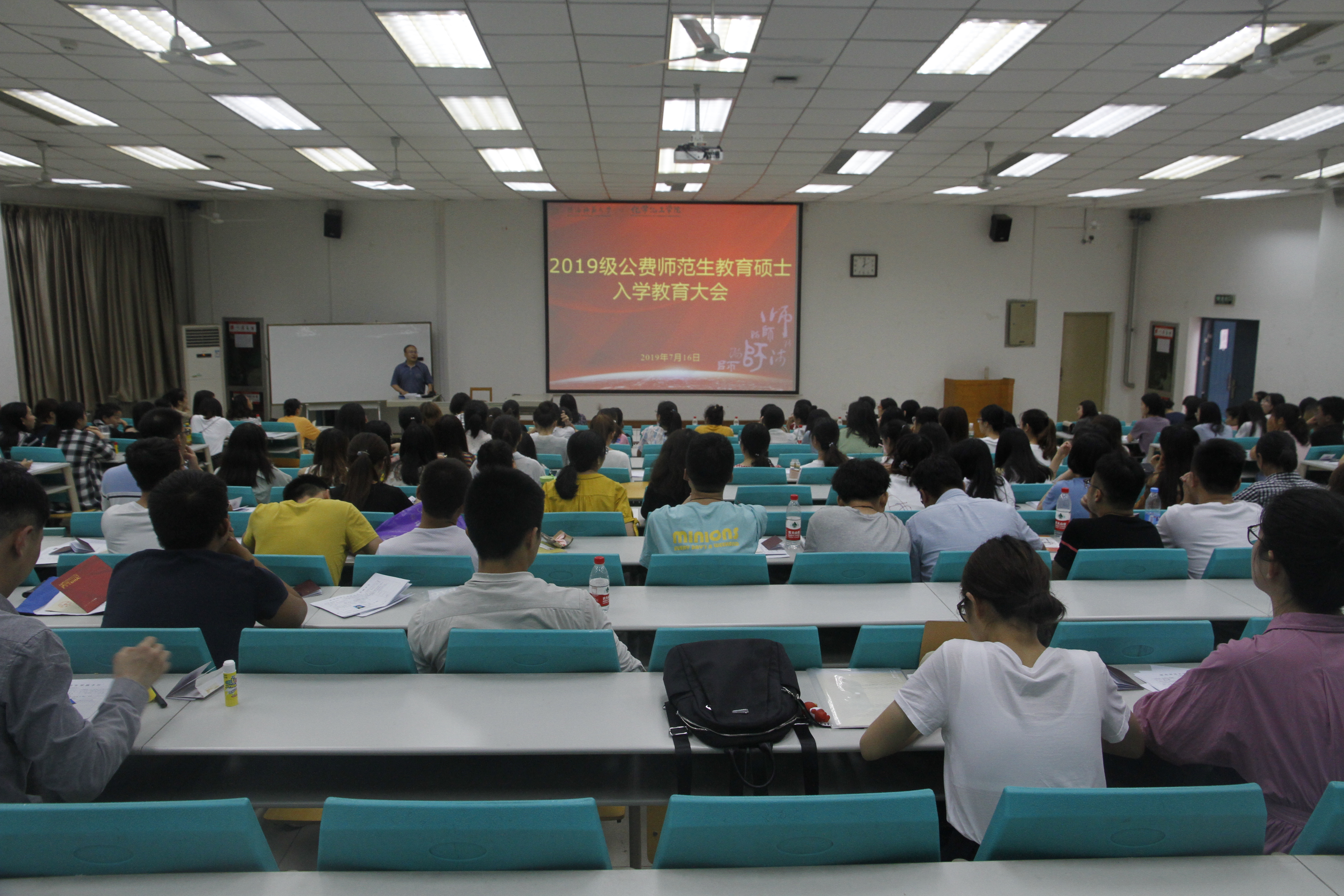 2018级公费师范生教育硕士入学教育大会在致知楼1668报告厅举行。副院长丁立平、研究生辅导员牟朝丽、公费师范生教育硕士秘书曹凯超以及2018级公费师范生教育硕士新生出席了本次会议。