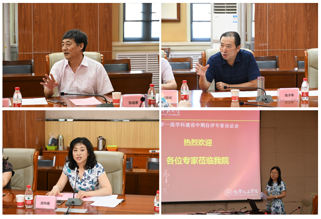 会议开始,高玲香介绍了与会的专家、领导,并对他们的到来表示热烈的欢迎。随后,高玲香简要介绍了化学一流学科中期自评的背景、要求。丁立平分别就学科发展定位、学科建设目标、学科建设基础、学科建设情况、化学一流学科建设存在的问题、化学一流学科建设的举措等六个方面对自评估建设的预期目标、建设情况做了汇报。