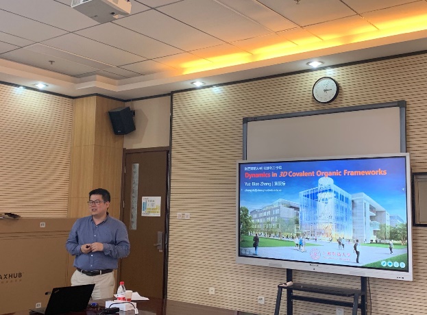 5月31日下午,上海科技大学章跃标教授应邀访问香蕉视频 ,并在致知楼1362报告厅为香蕉视频 师生带来了“Dynamic 3D Covalent Organic Frameworks”的学术报告。香蕉视频 白俊峰教授、翟全国教授、赵玉明教授、徐玲副教授、薛东旭副教授等教师以及香蕉视频 相关专业研究生和本科生聆听了此次报告。报告会由薛东旭副教授主持。