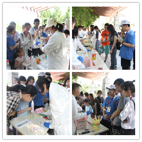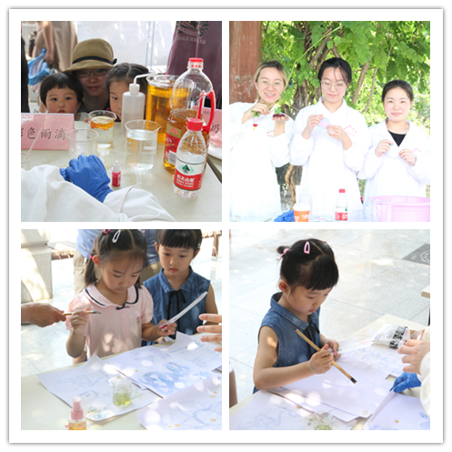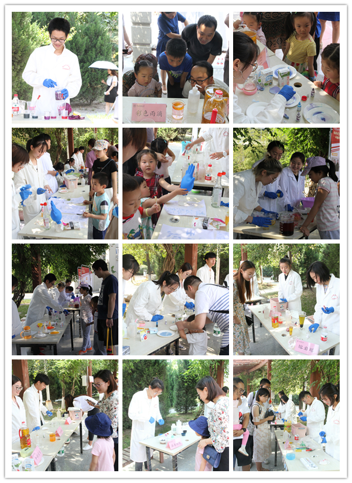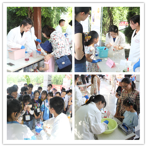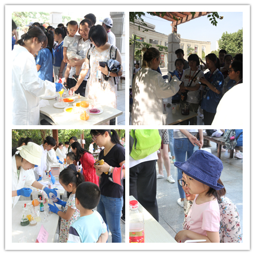 活动吸引了我校各学院学生、来我校游学的中学生、师大社区群众等驻足观看,实验小组为观众带来包括动手拼装、展示讲解、实验演示等不同类型的18个化学元素相关活动,分别是:火山爆发、神奇的红茶、彩色雨滴等。现场观众在演示小组的指导下也尝试动手操作实验。来自商学院的一位同学是个化学爱好者,他和现场演示小组一起兴致勃勃地探讨起多个实验的原理。来自数科院的殷怡琳同学更是感慨生活处处皆化学,在经过做实验的同学精心讲解之后,自己仿佛打开了新世纪的大门,化学不再是神秘的学科,而是生活中充满趣味的伙伴。来自兰州二中的一位女同学表示:很开心这次研学之旅中有机会观摩来自师大化学院哥哥姐姐们的实验展示,实验都非常有趣,让我们看到了不一样的多彩的化学,也非常期待将来能到师大化学专业学习。带着孩子围观的家长们也纷纷表示实验很有趣,实验现象精彩纷呈,也让他们有了在家里通过实验的形式给孩子们科普知识的想法。