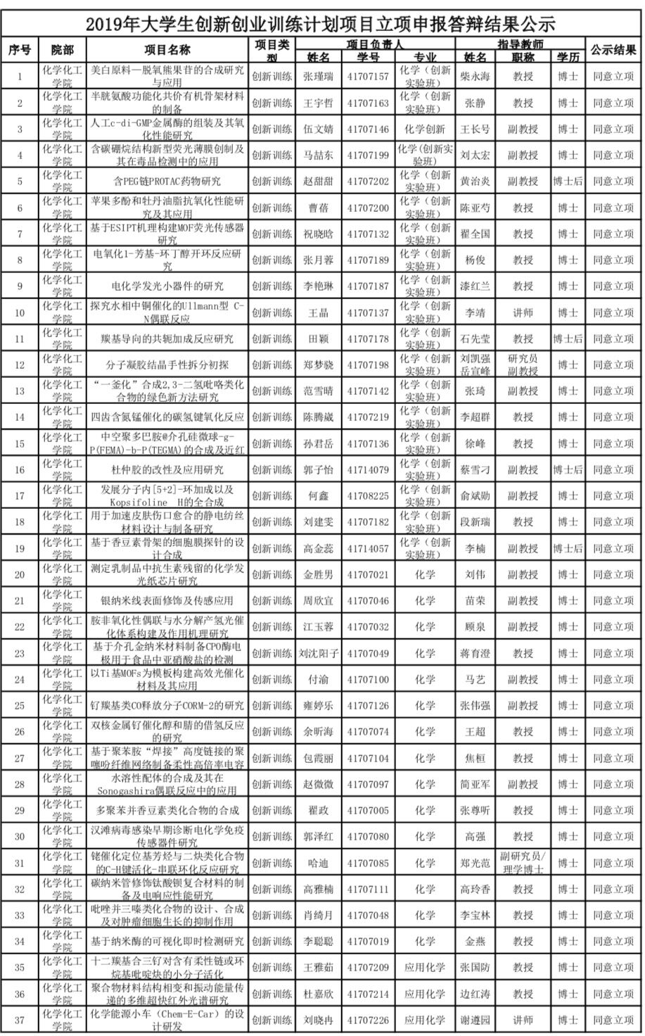 近日,教务处对2019年“大学生创新创业训练计划”项目评审结果进行了公示,香蕉视频