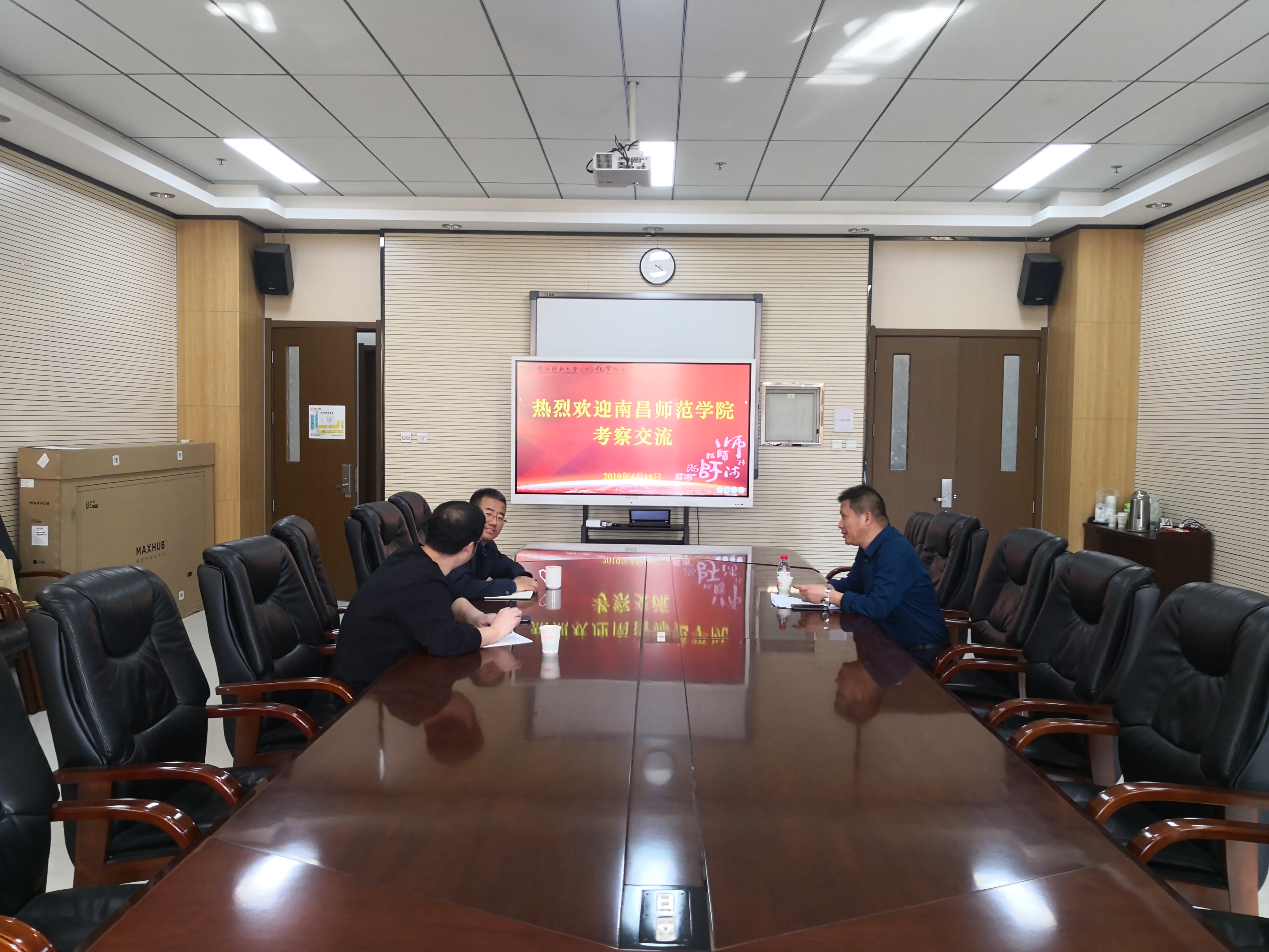 4月18日,南昌师范学院化学系曾明主任到香蕉视频 进行学习交流,香蕉视频 刘成辉副院长和肖新军副院长接待,并在1362会议室进行座谈。