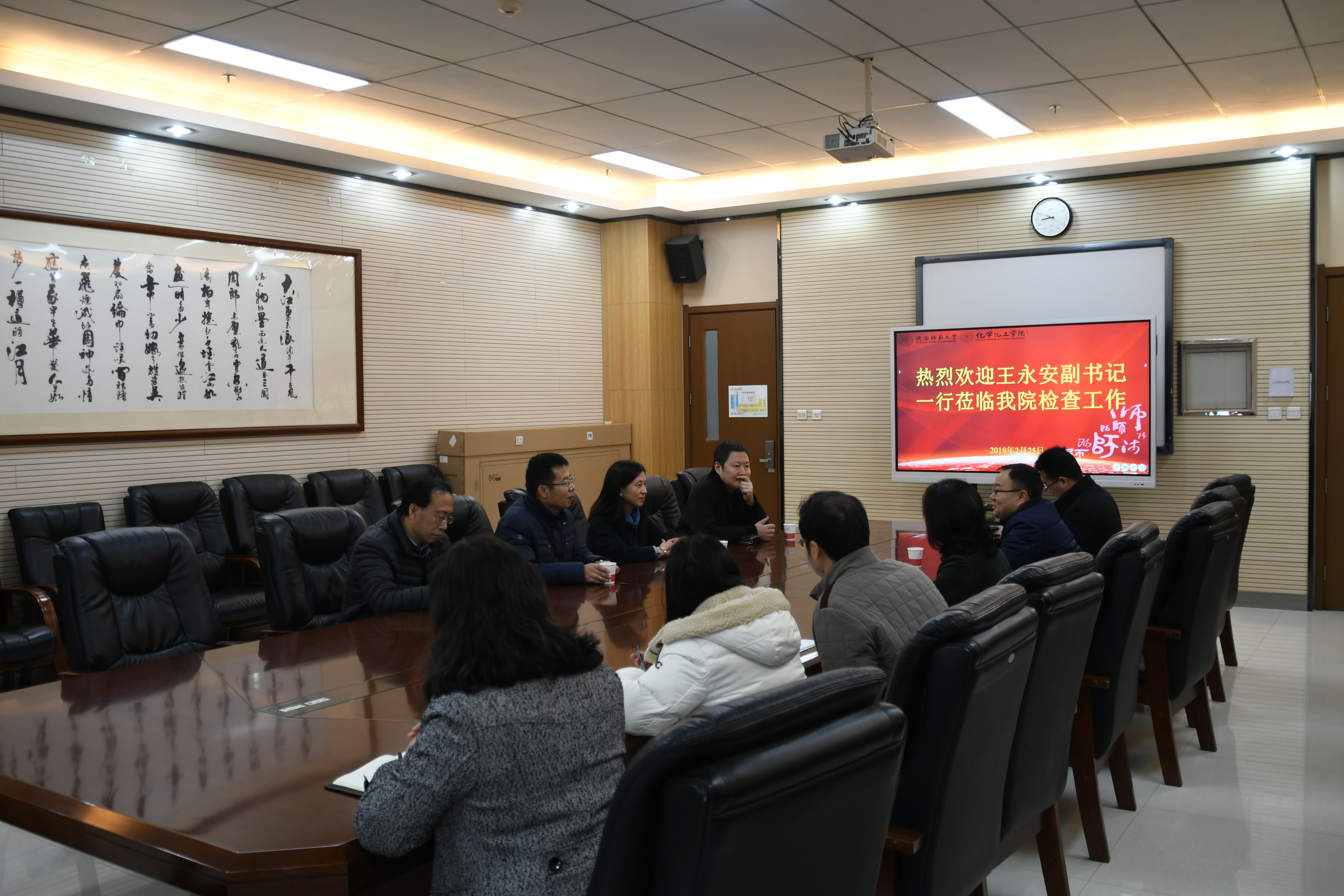 2019年2月25日,新学期伊始,我校党委副书记王永安,党委学工部部长(学生处处长)刘少锋,学科建设处处长姚若侠,实验室建设与管理处处长郭建中一行来香蕉视频