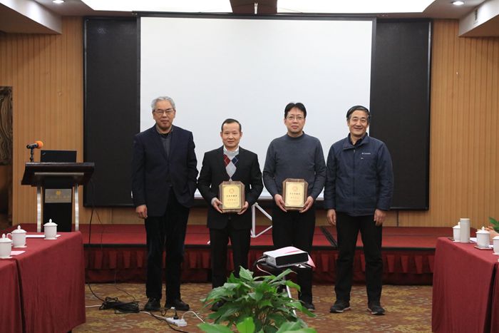首先,房喻教授回顾了化学学科的发展历程,实验室的建立过程;高度赞扬了以刘昭铁教授、高子伟教授和董文生教授为核心的上届领导班子在实验室建设发展过程中所作的艰苦探索。随后,房喻教授和张成孝教授代表学院和重点实验室向与会的刘昭铁教授和董文生教授颁发了“杰出贡献奖”奖牌。刘昭铁教授和董文生教授也对重点实验室同仁过去十多年来的理解和支持表示感谢,同时也表示会一如既往地支持和参与重点实验室的工作,为实验室的发展继续贡献自己的力量。