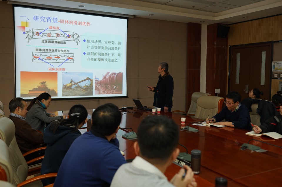 董晋湘教授分别介绍了他课题组在低品质甘油高值化利用和层状硅/磷酸盐合成与固体润滑特性方面的研究进展,并回答了师生感兴趣的问题。以上述两个课题为例,董晋湘教授从选题背景和出发点、课题研究过程中的曲折经历、研究结果的理解和定位等角度,就如何选题、坚持和放弃、形成研究特色等进行了无私分享,特别是如何从工业应用特点和基本要求出发,就其中的关键科学和技术问题进行理论分析,提出研究思路并进行实验验证,把“精细化工产品变商品直到奢侈品”的解决问题思路,使现场师生受益匪浅。报告会结束后,董晋湘教授参观了相关教师实验室,并就关心的问题进行了深入交流。