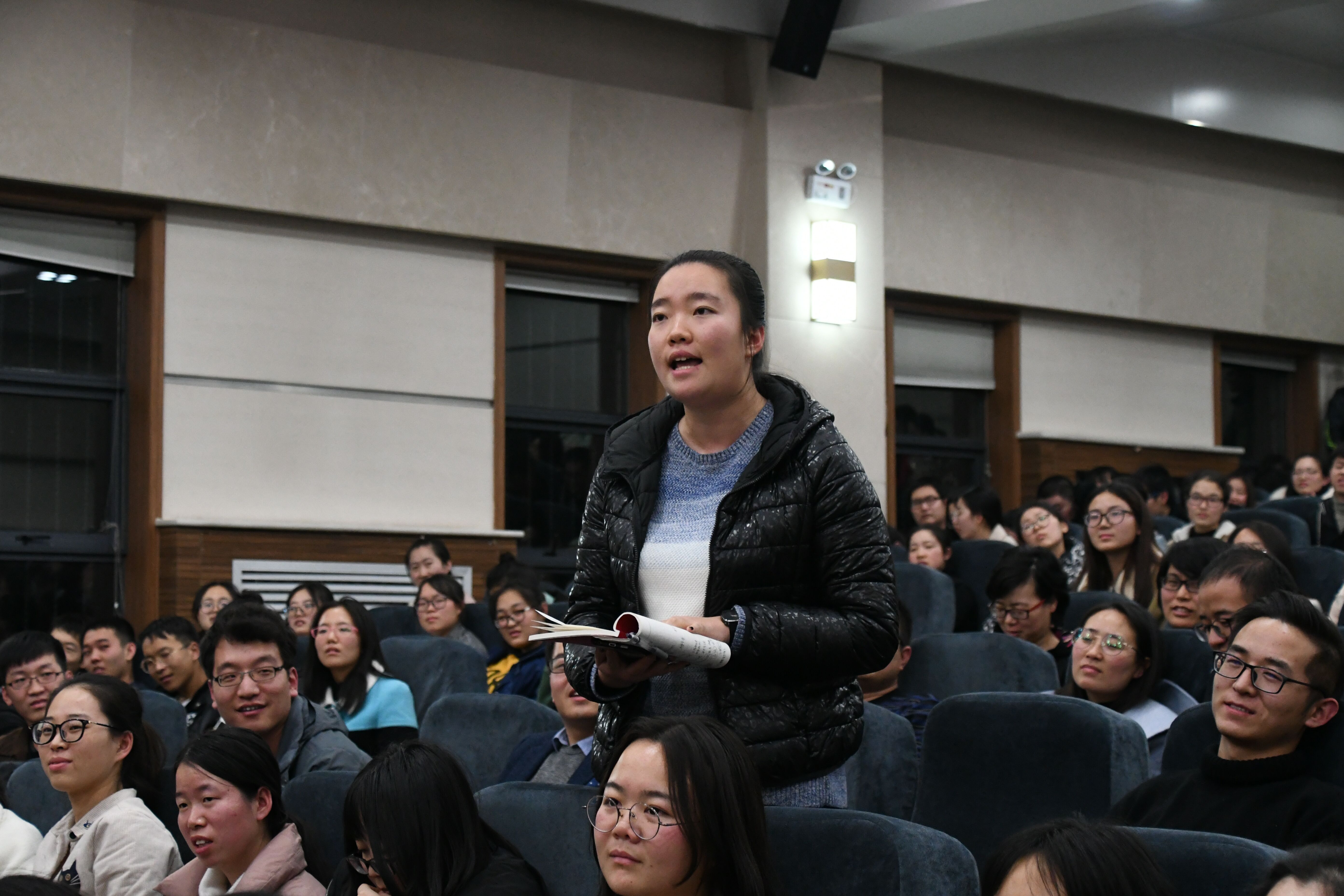 讲座最后,现场与在线观众积极提问,房老师就年轻教师的职业规划、如何解决学生心理困惑等问题作出了个人的解答,其深刻的见解也给了提问者明确的方向和强大的动力。针对哲学与政府管理学院研一学生关于高校辅导员该具有怎样的品格的提问,房老师也提出了个人对高校辅导员的期待和要求。