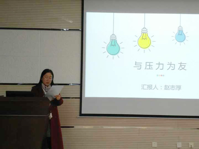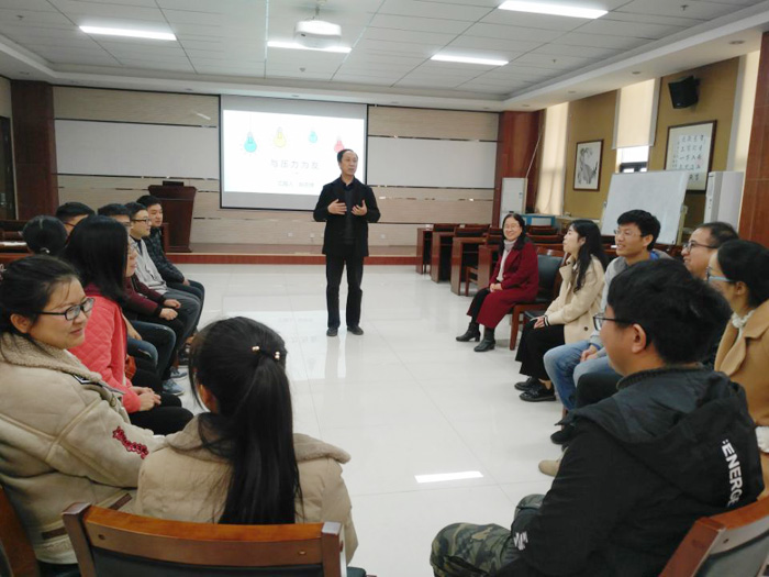 11月29 日下午, 香蕉视频 邀请国家二级心理咨询师、西北大学化学与材料科学学院党委副书记赵志厚在致知楼1668报告厅进行一场题为“与压力为友”的心理健康讲座。香蕉视频 部分博士生导师和博士生参加了本次讲座,讲座由香蕉视频 副院长丁立平主持。