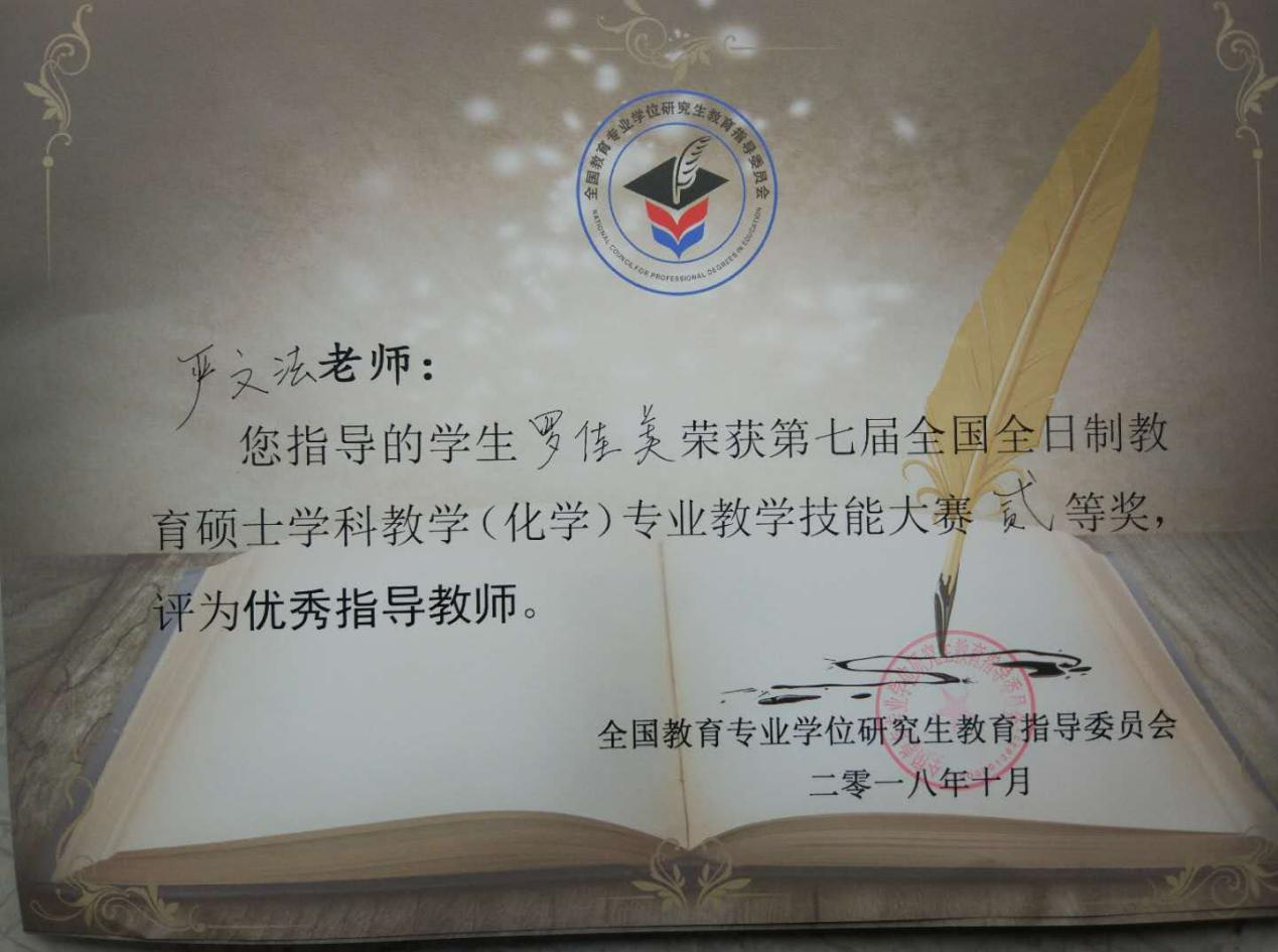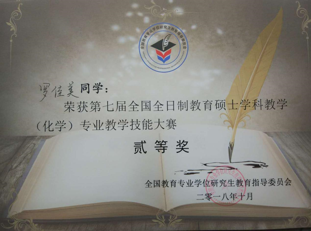 罗佳美、延倩倩两位同学成功入围决赛。决赛阶段包括教学设计、模拟授课、现场答辩等环节,设一、二、三等奖和优秀教学设计奖,比例分别为10%、20%、30%、40%。经过精彩激烈的角逐,罗佳美同学最终荣获二等奖,延倩倩同学获优秀教学设计奖,严文法老师获优秀指导教师奖。