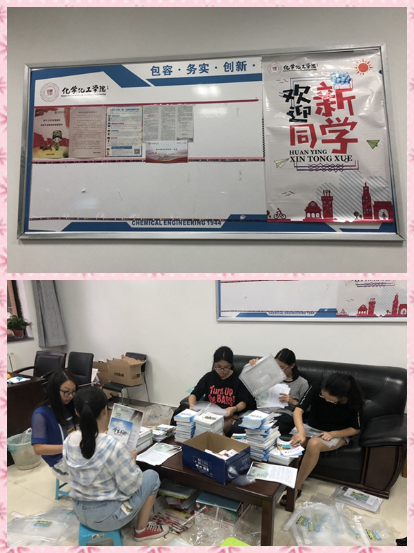为了迎接新生的到来,学院面向高年级优秀学生招募志愿者,负责协助学院做好2018级迎新工作。志愿者们还未开学就来到学校,同辅导员老师一起共同筹备迎新工作。262份新生材料,志愿者们一个一个装入袋中;45间新生宿舍,志愿者们一间一间张贴《香蕉视频