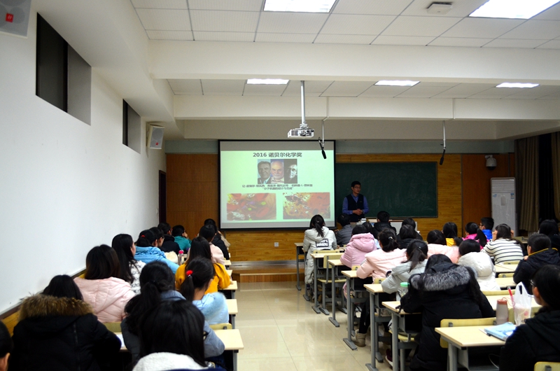 无机化学教学组的学术团队和代表成果,接着从专业角度为同学们解读了配合物在无机化学领域的重要作用,重点分析了x单晶衍射技术对配合物结构及性质检测的作用。他还结合科技前沿信息,从2016年的诺贝尔化学奖带领同学们了解了“分子机器的设计与合成”。
