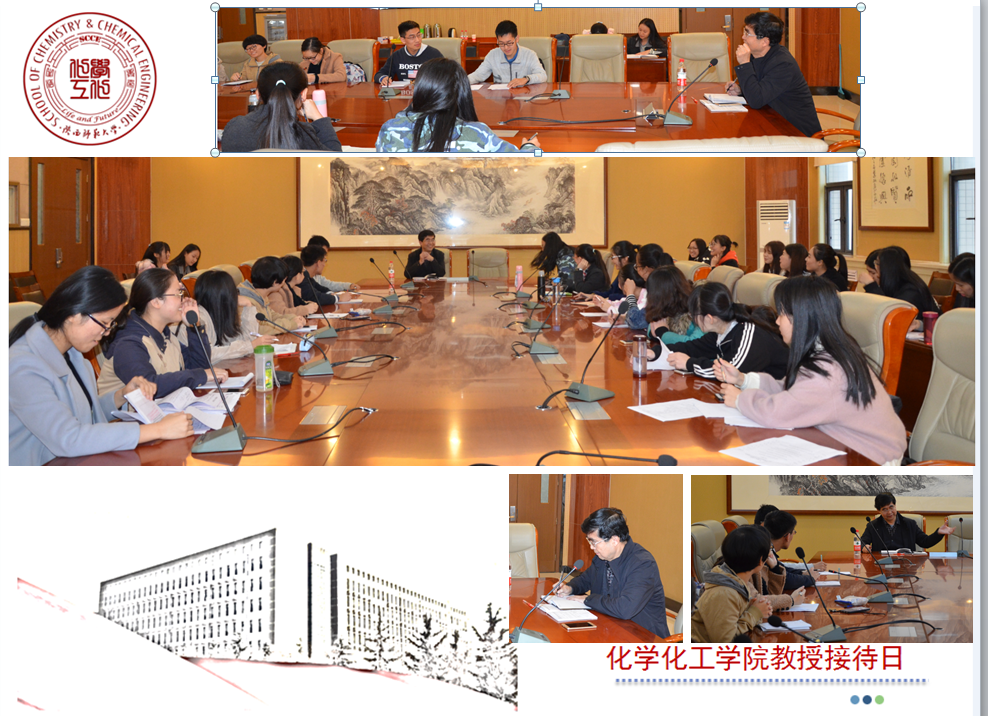 10月30日上午,徐峰教授应邀参加了2016级应用化学一班的教授接待日活动。在轻松愉快的氛围中,徐老师用诙谐幽默的语言向同学们讲述了自己的求学之路的艰辛,并用身边的事例告诉大家,大学生应该尽快适应社会,面对现实压力的同时也要学会调节心理压力。对于同学们考研就业方面的问题,徐老师指出,要选择适合自己的、同时也要适应社会需要的人生道路。最后,徐老师鼓励同学们出国留学,通过自己坚持不懈的努力,实现人生目标。