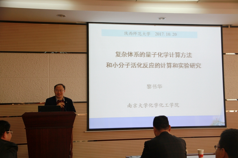 师生作了题为“复杂体系的量子化学计算方法和小分子活化反应的计算和实验研究”的精彩报告。白俊峰教授、王文亮教授、张聪杰教授、尹世伟教授、杨鹏教授、刘峰毅教授、王渭娜等教师及相关专业研究生、本科生聆听了本次报告。报告会由白俊峰教授主持。