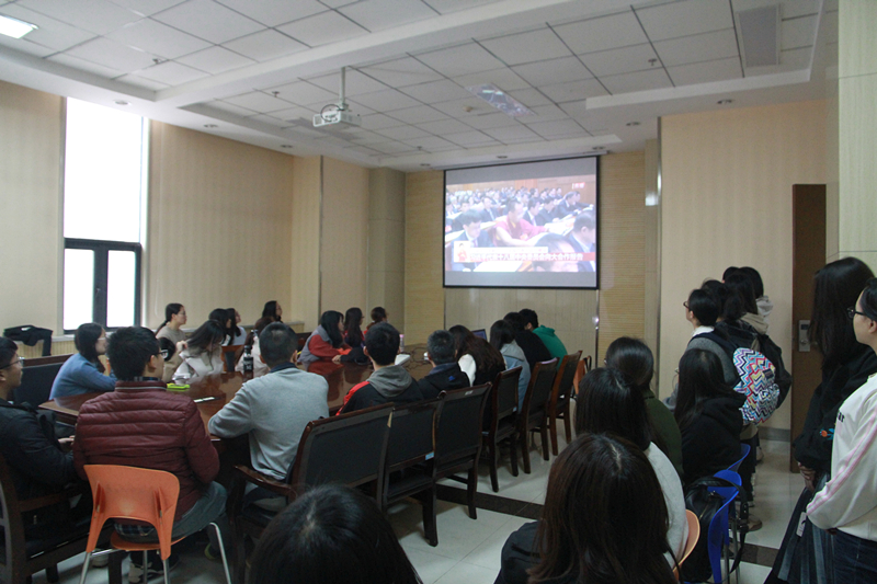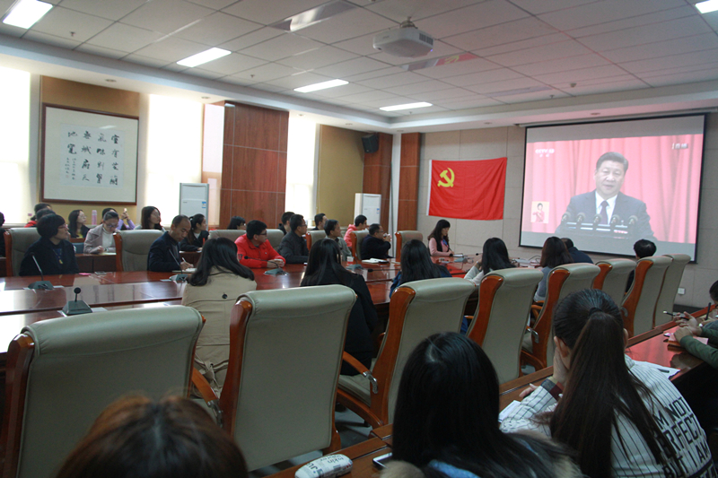 今天上午,中国共产党第十九次全国代表大会在北京盛大召开,香蕉视频 党委委员、党政领导,教工支部书记和党员代表,研究生党员、本科生党员和入党积极分子分别在致知楼1568、1621、1347和1447会议室收看十九大开幕式。教工中教应化支部单独组织党员在1555室集中收看十九大开幕式。